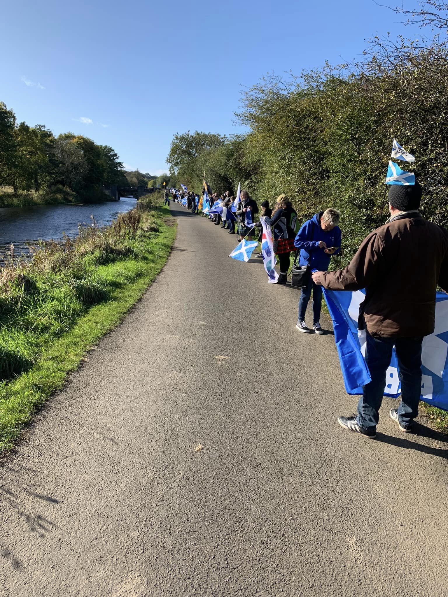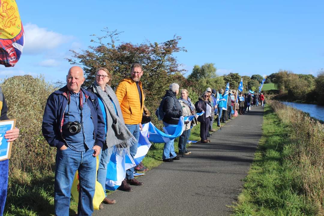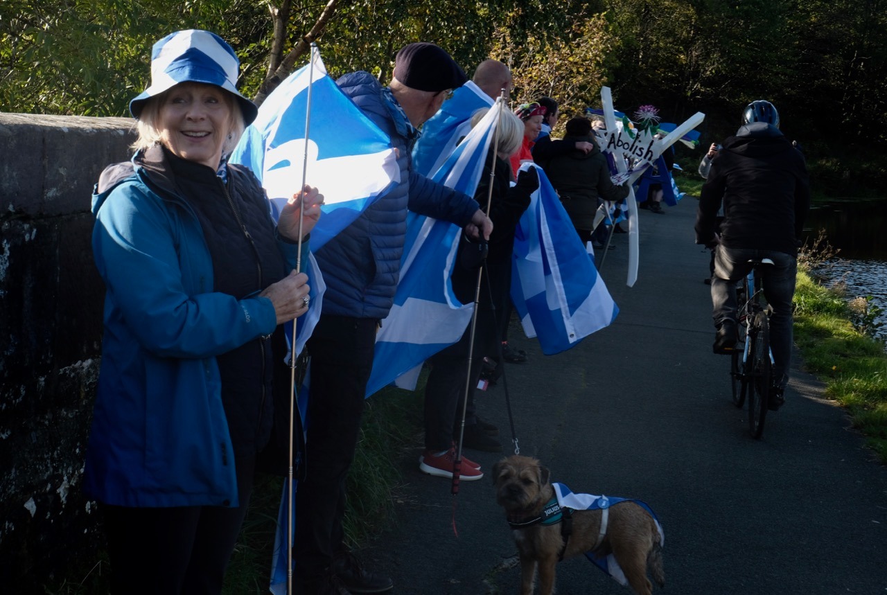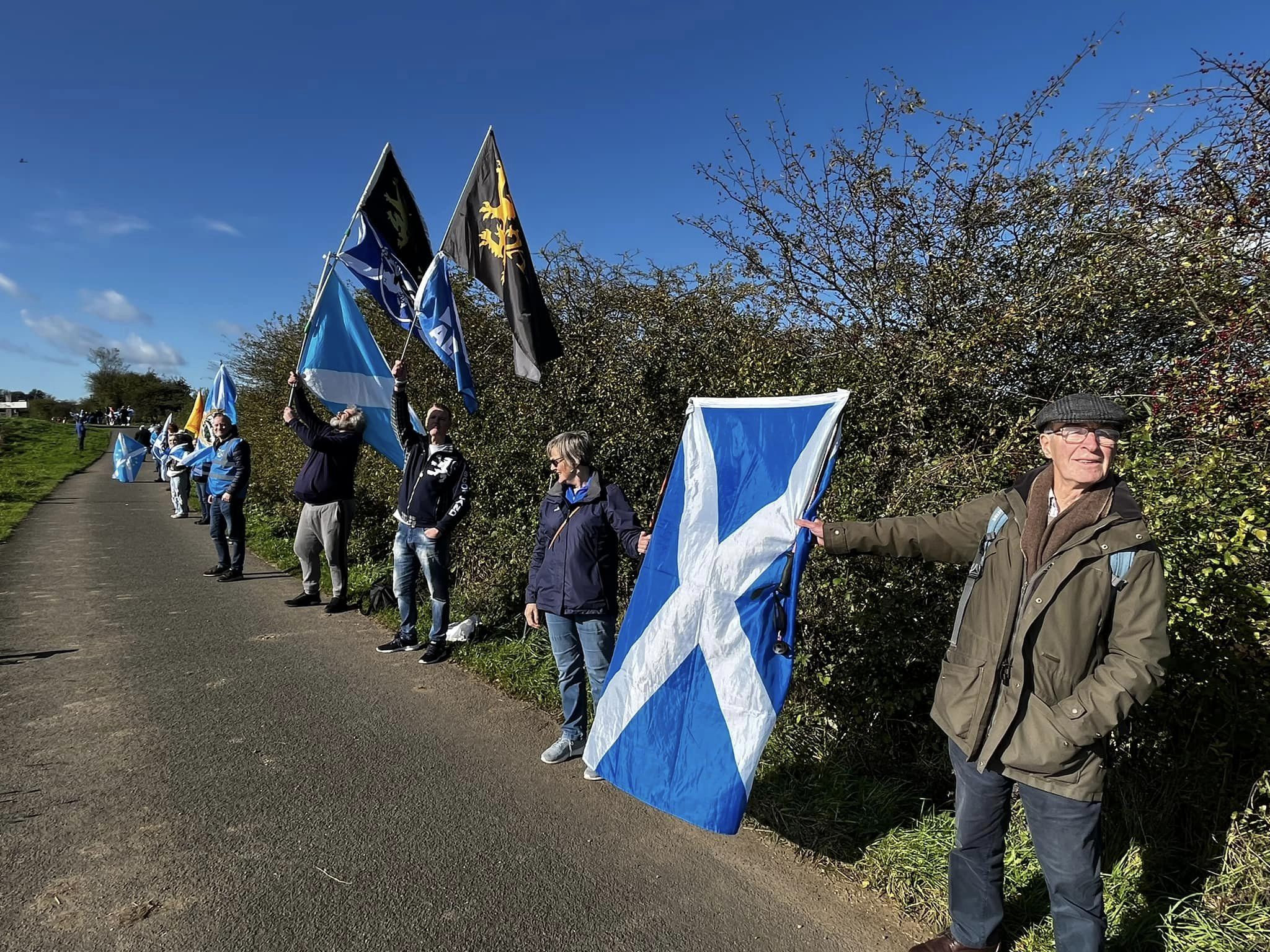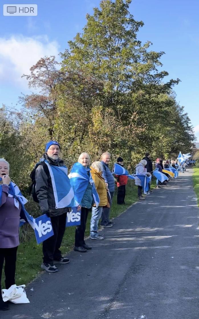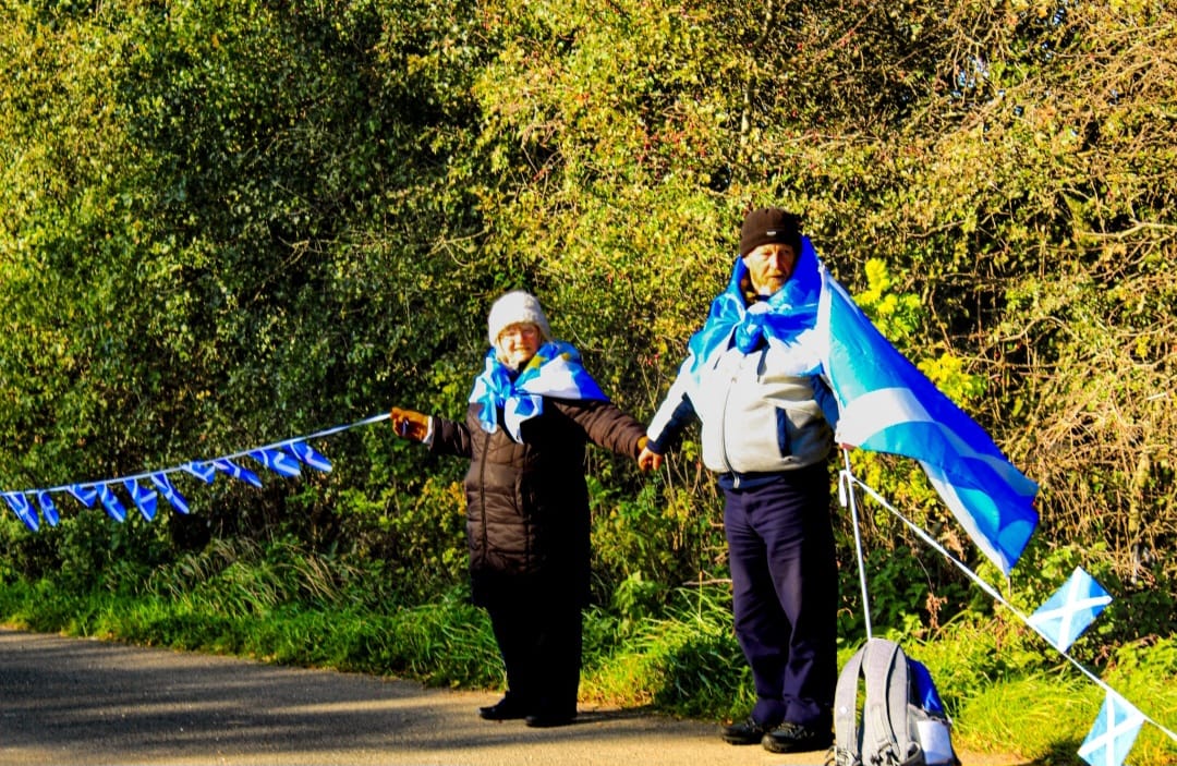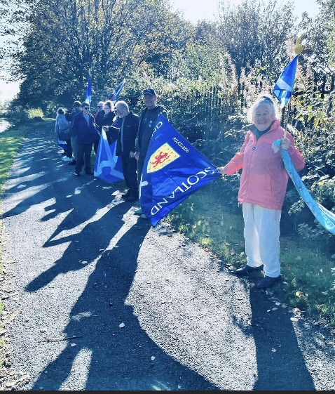 *Note: the undernoted photos were taken and distributed, on social media, by participants of the Chain of Freedom – Scotland. Any obtained via drone footage or where participants were not in ‘single file’, went against the COFS published advice.