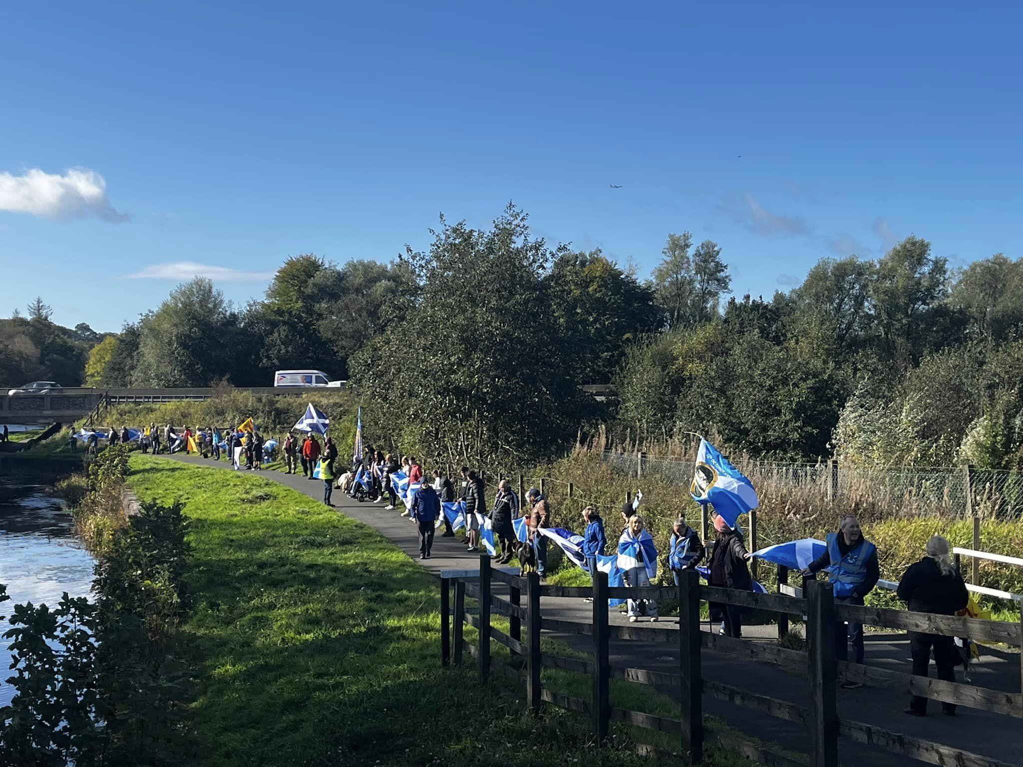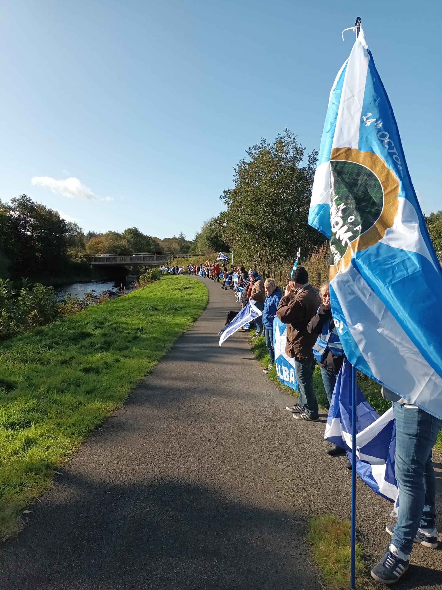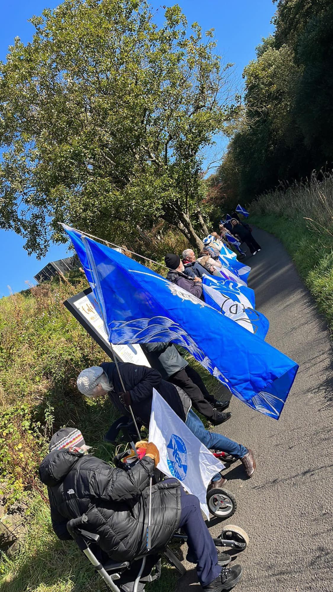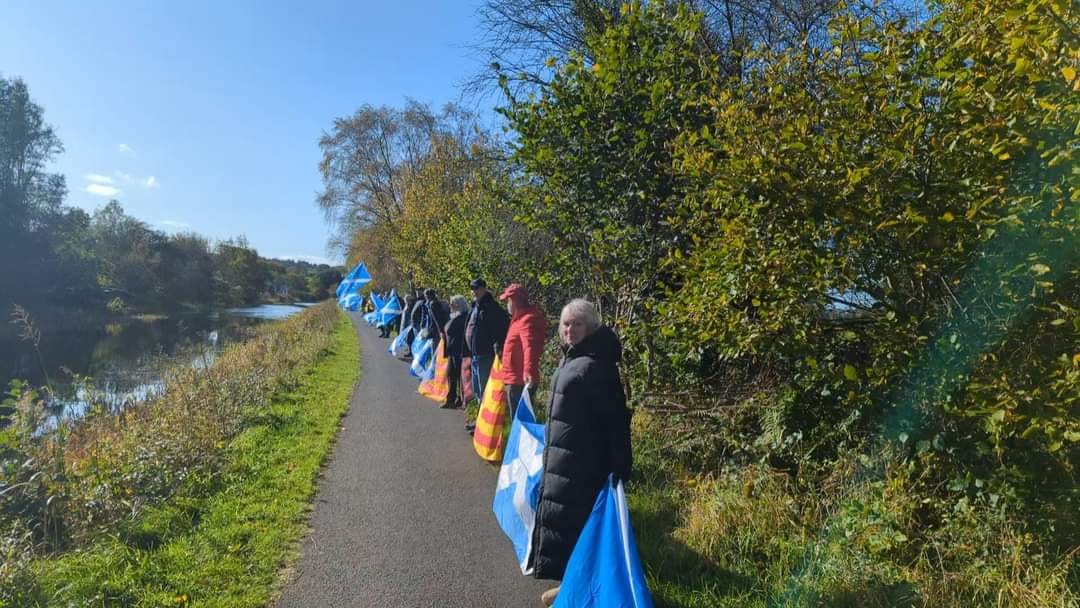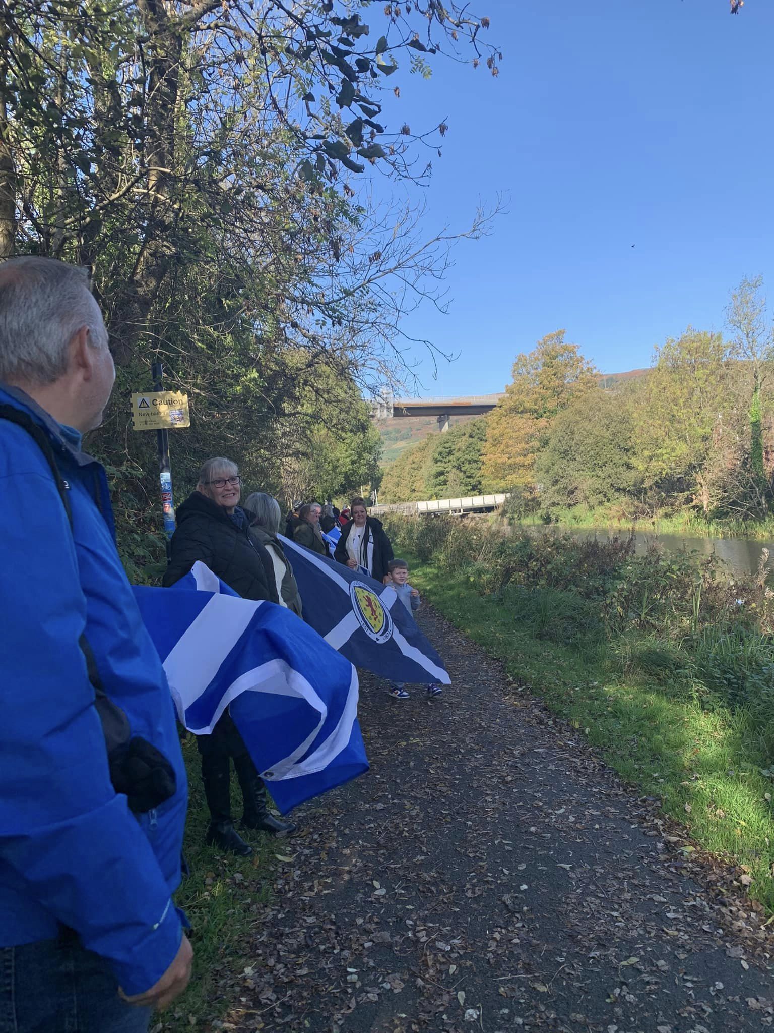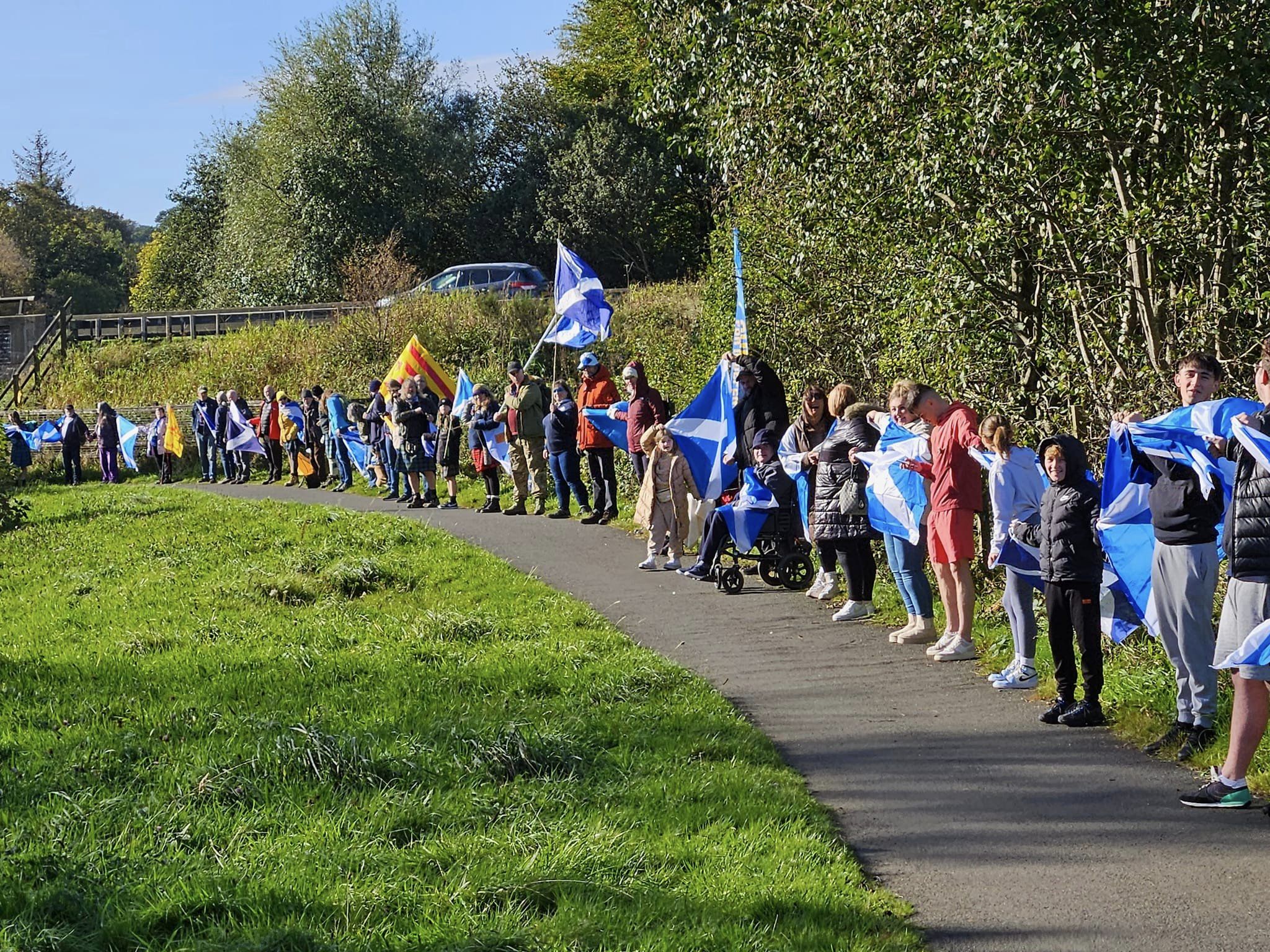 *Note: the undernoted photos were taken and distributed, on social media, by participants of the Chain of Freedom – Scotland. Any obtained via drone footage or where participants were not in ‘single file’, went against the COFS published advice.