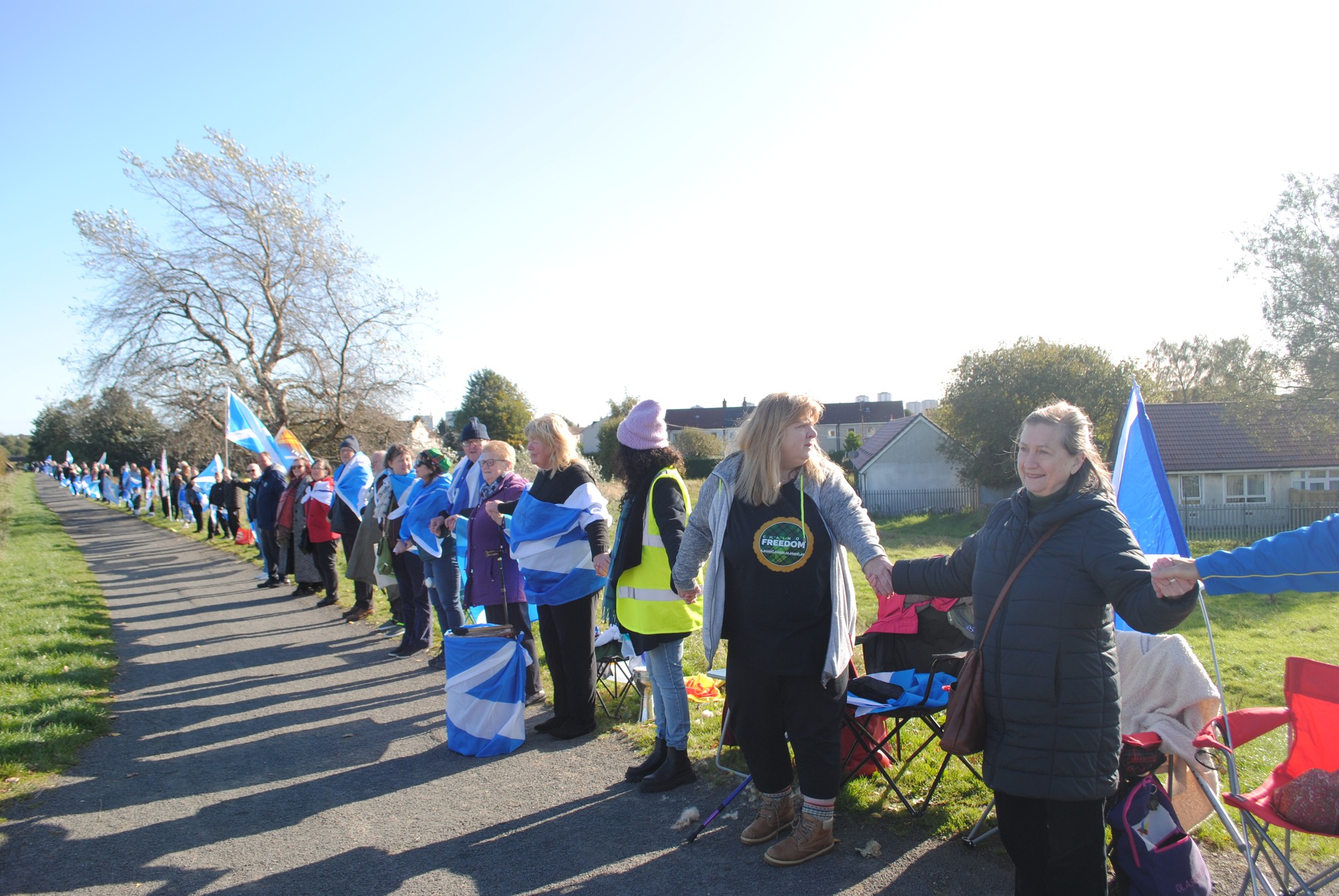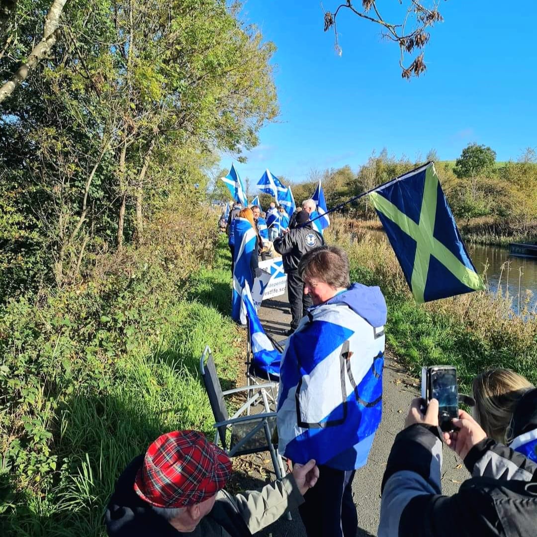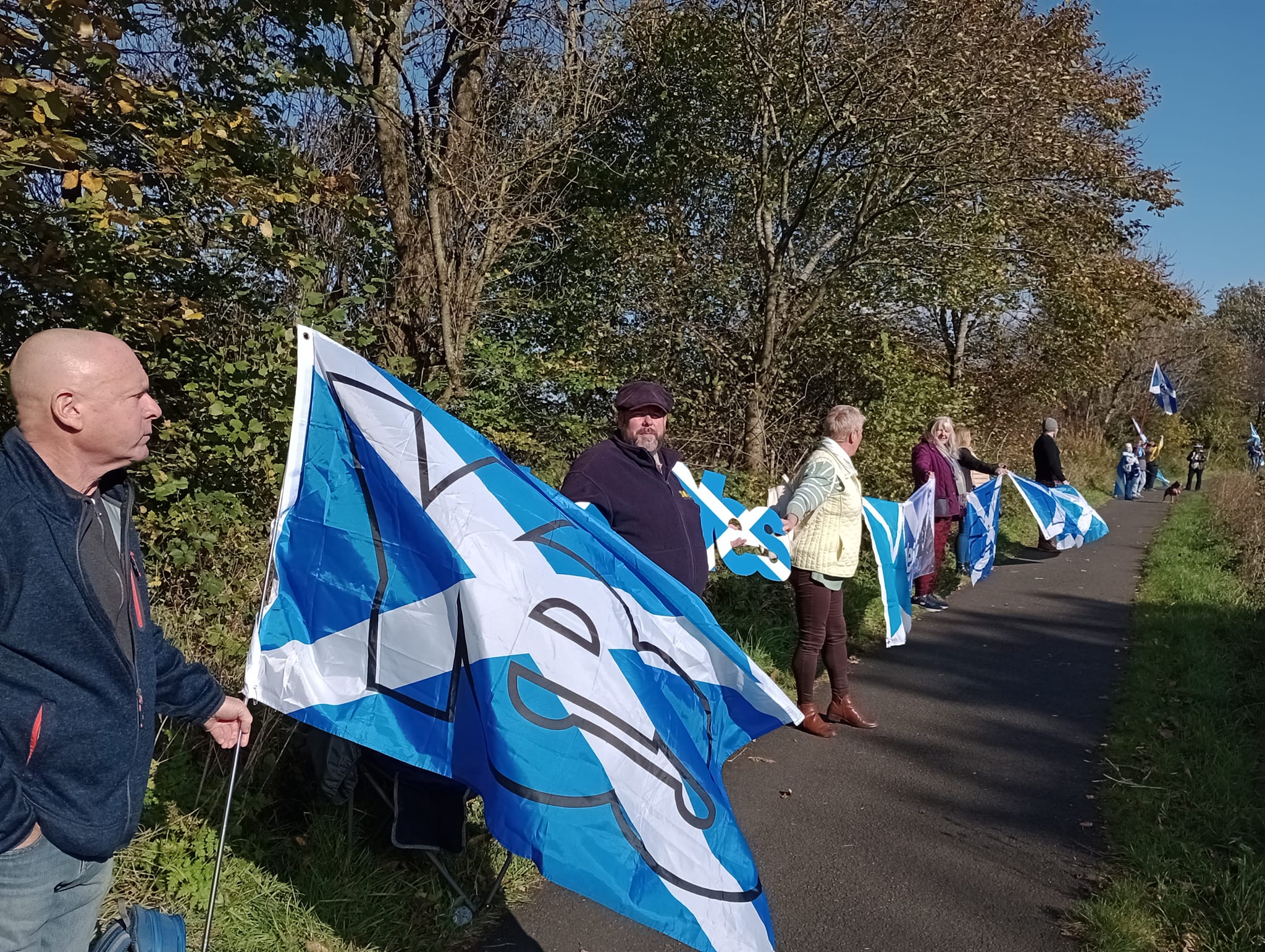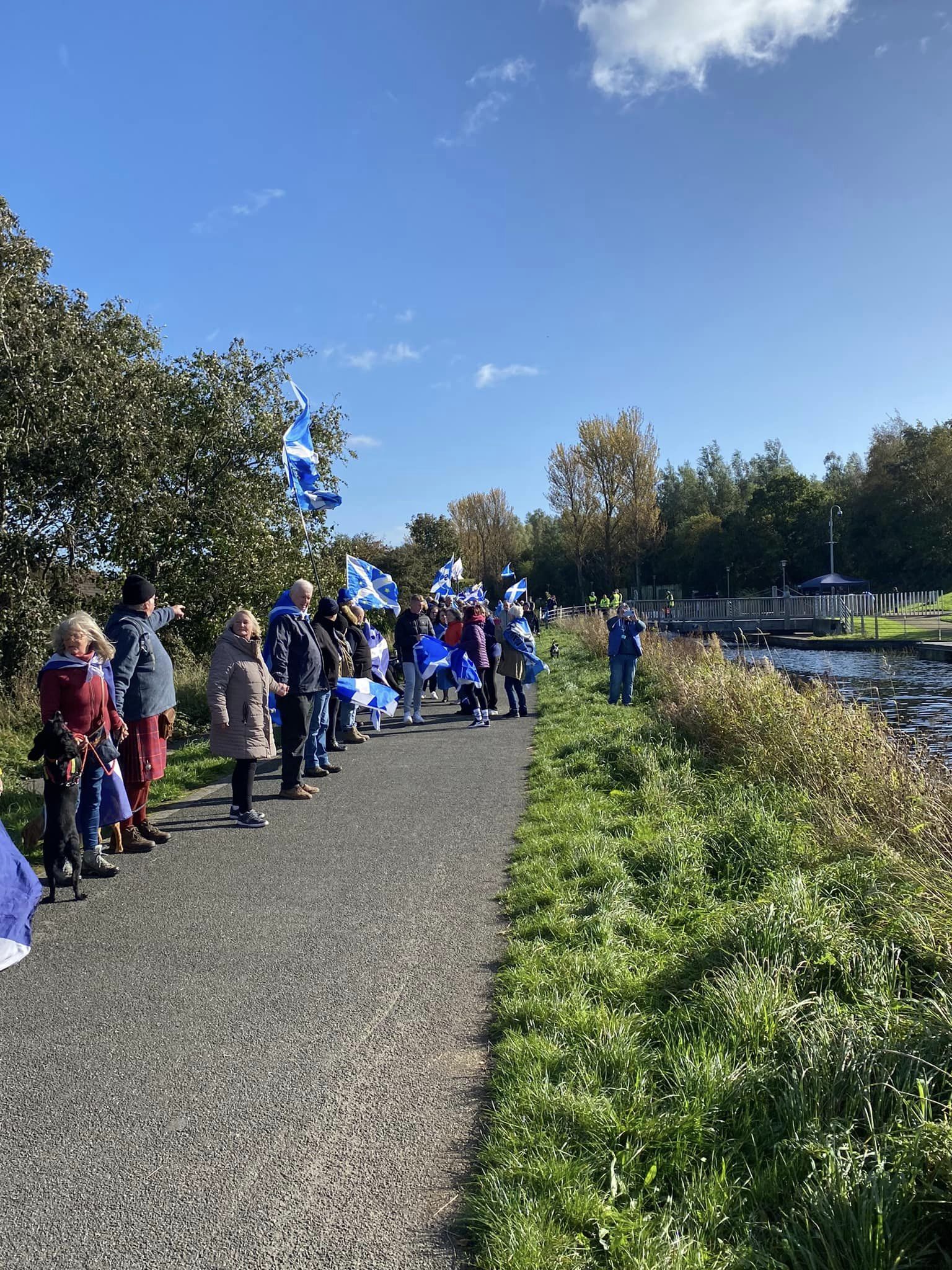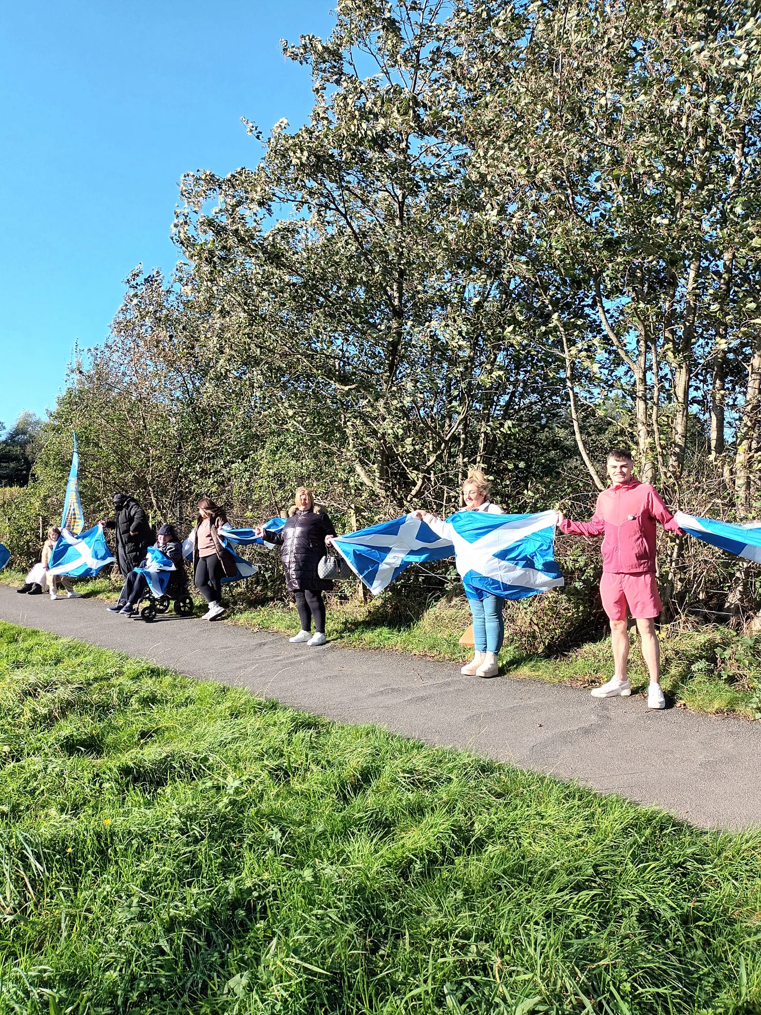 *Note: the undernoted photos were taken and distributed, on social media, by participants of the Chain of Freedom – Scotland. Any obtained via drone footage or where participants were not in ‘single file’, went against the COFS published advice.