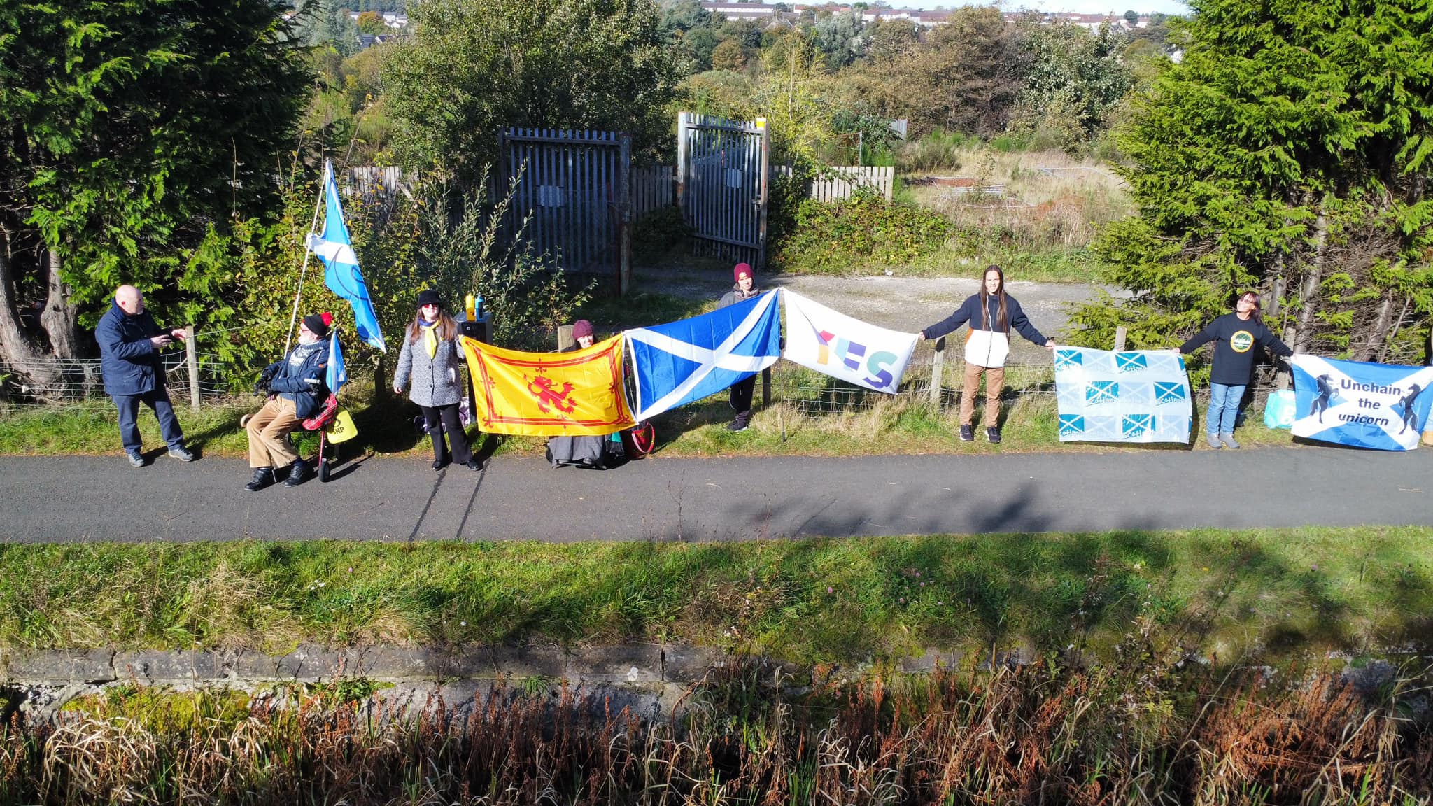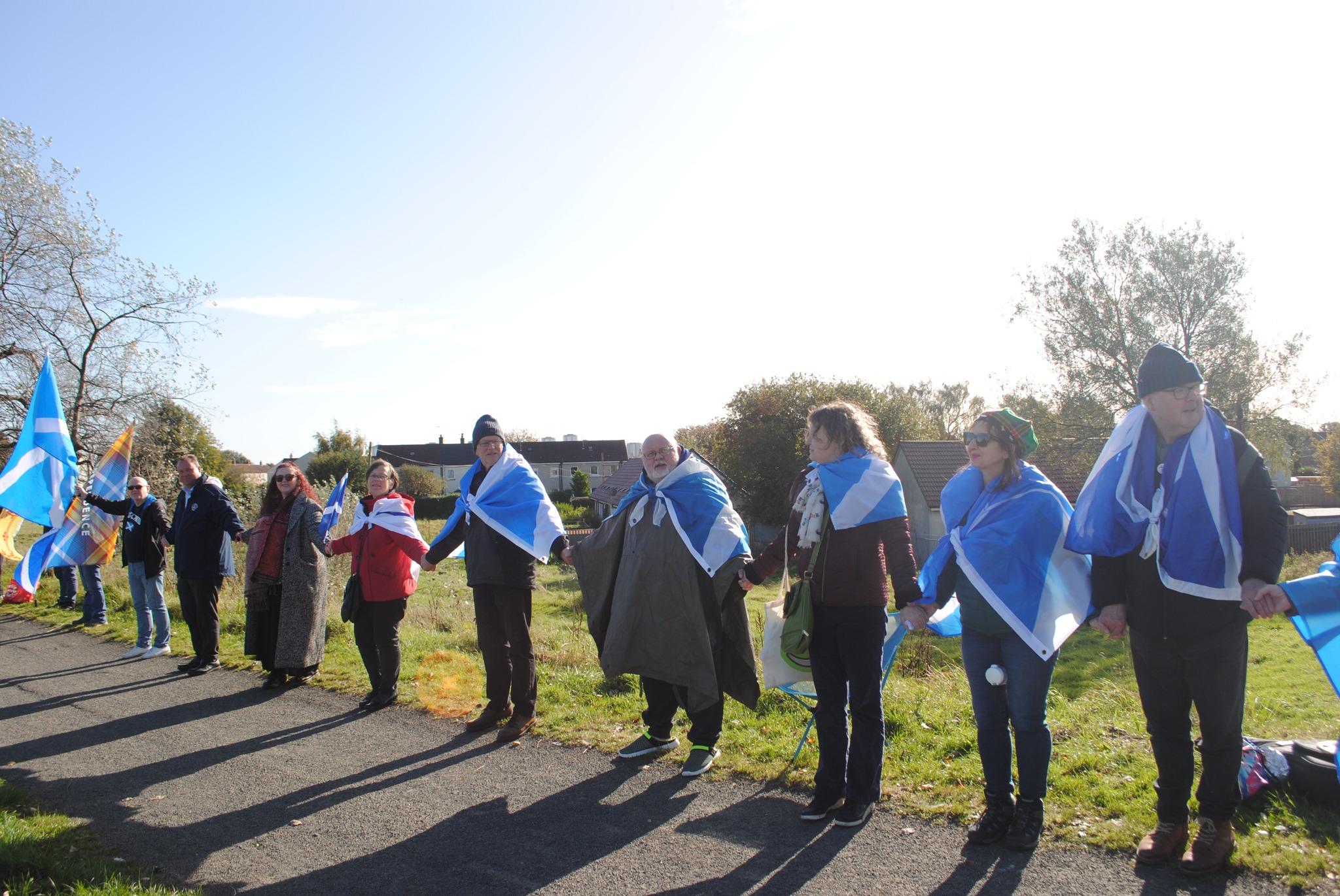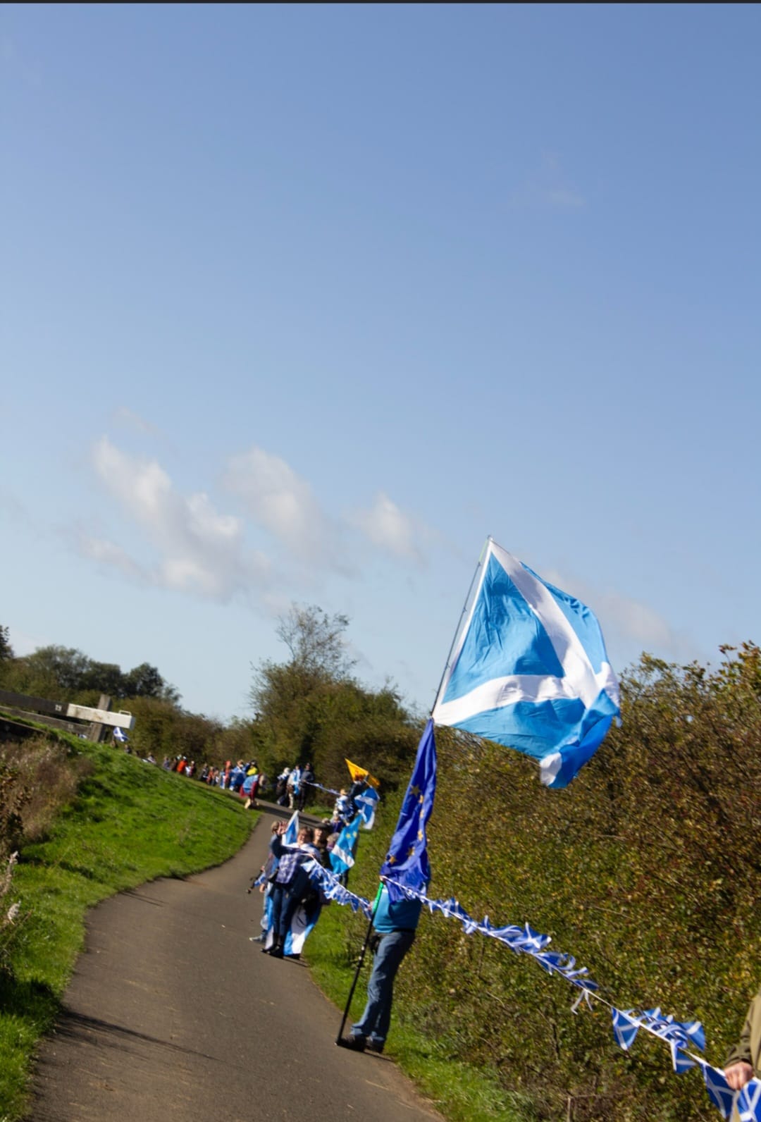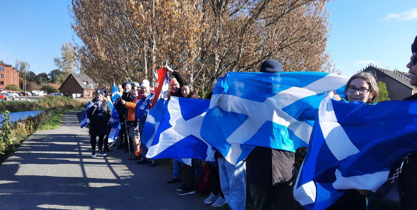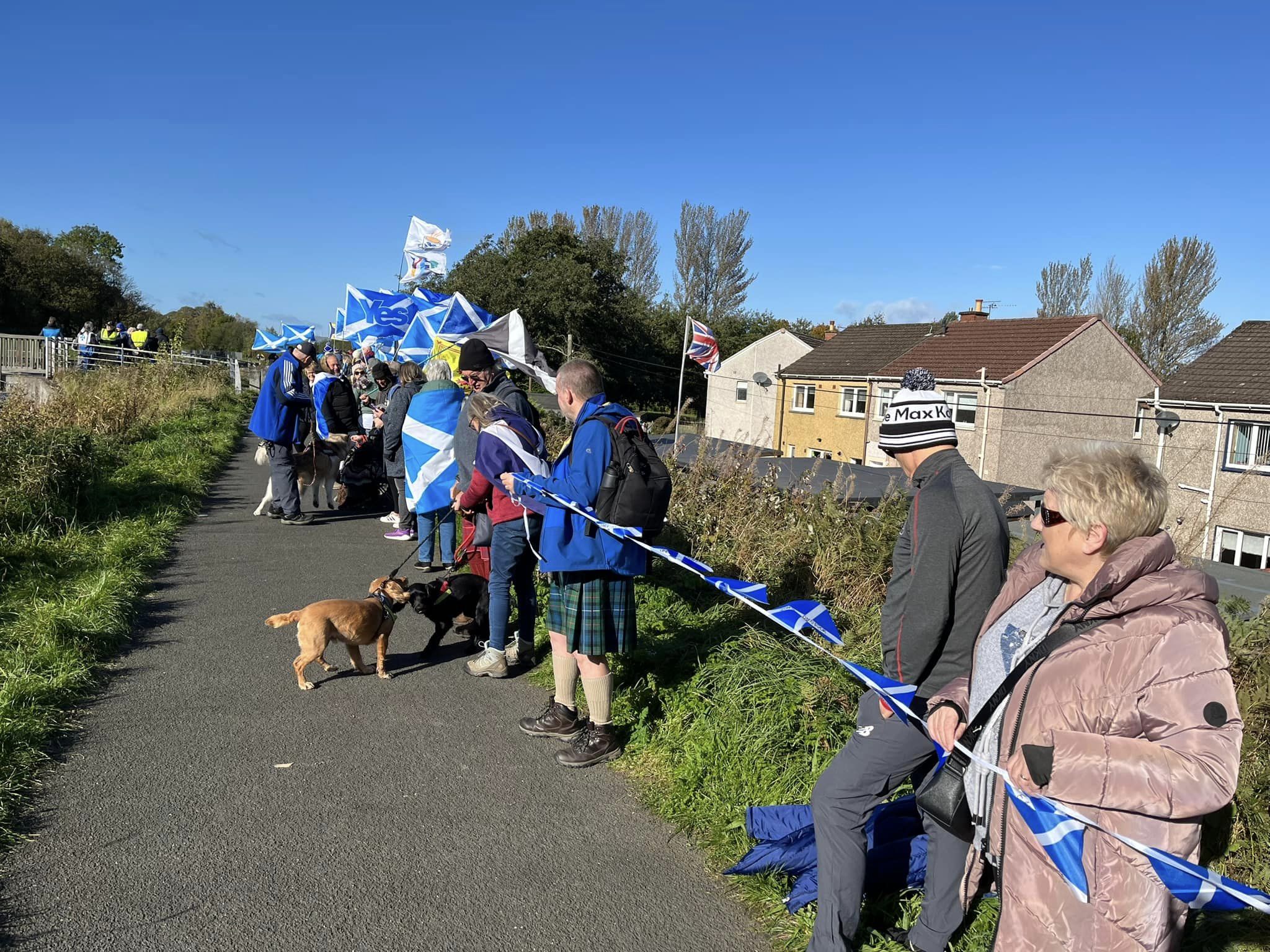 *Note: the undernoted photos were taken and distributed, on social media, by participants of the Chain of Freedom – Scotland. Any obtained via drone footage or where participants were not in ‘single file’, went against the COFS published advice.