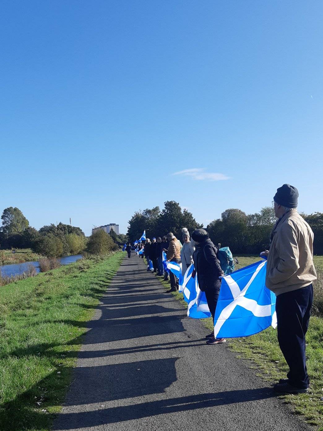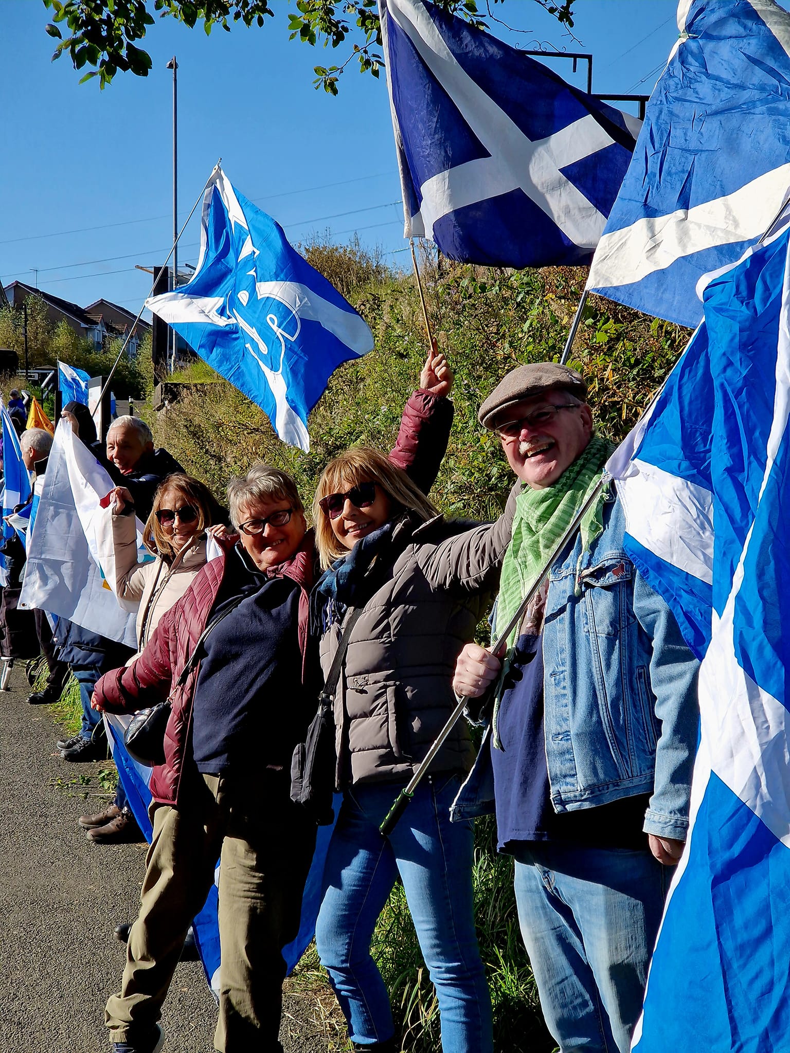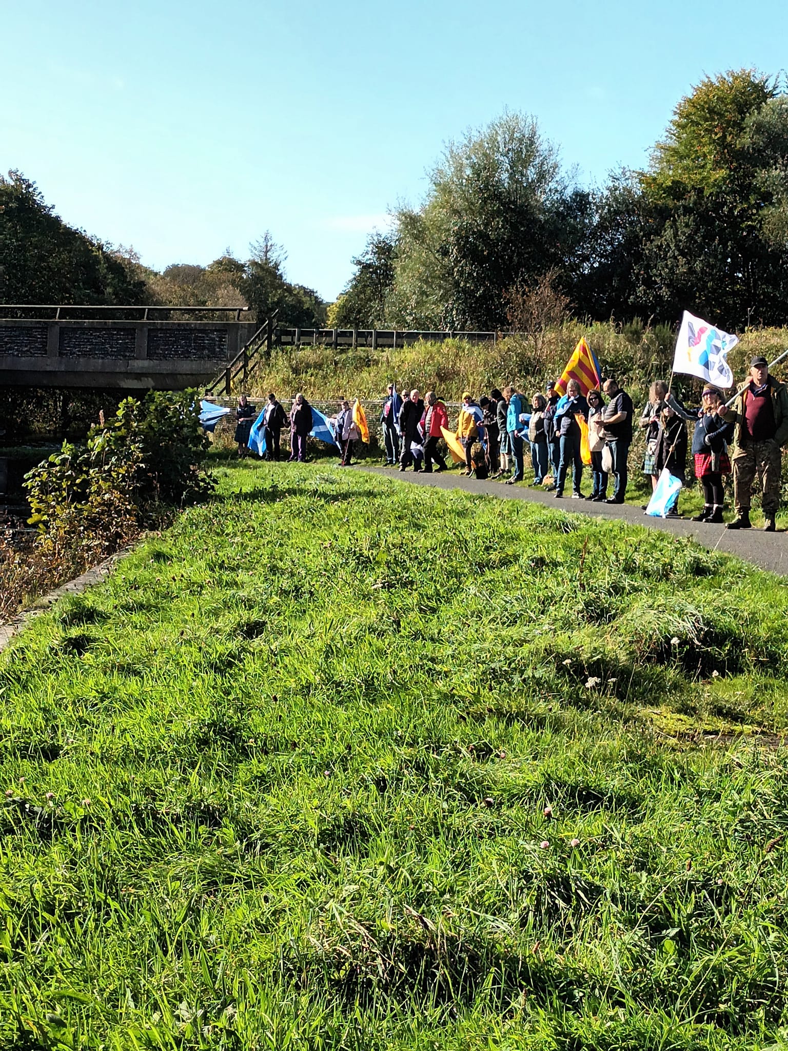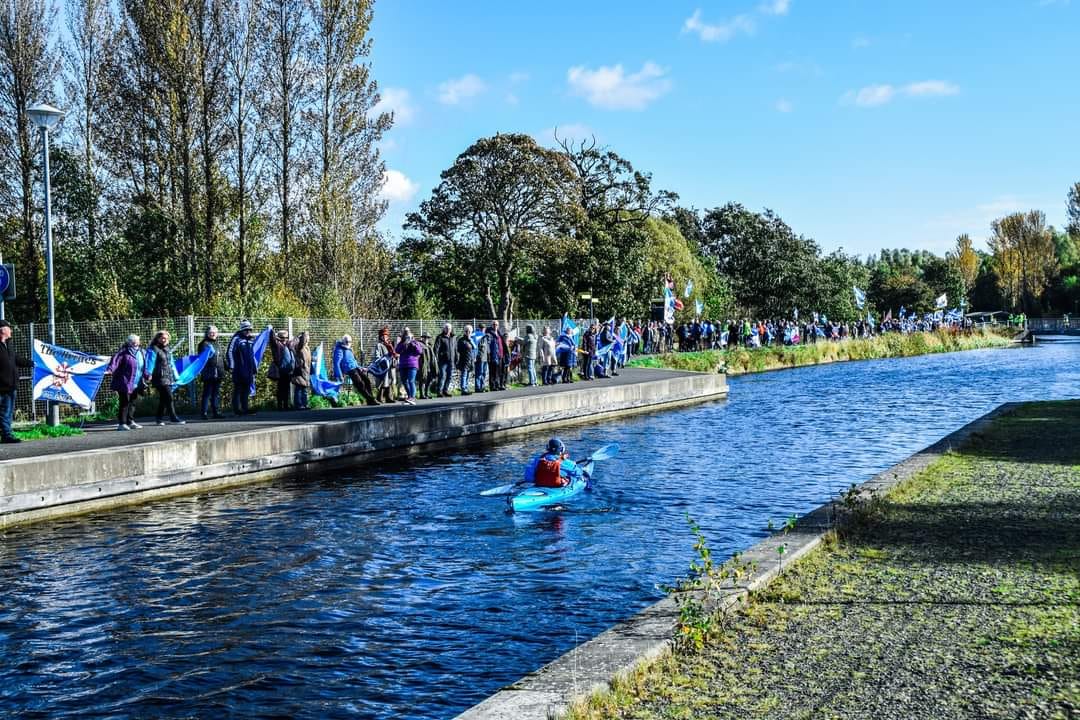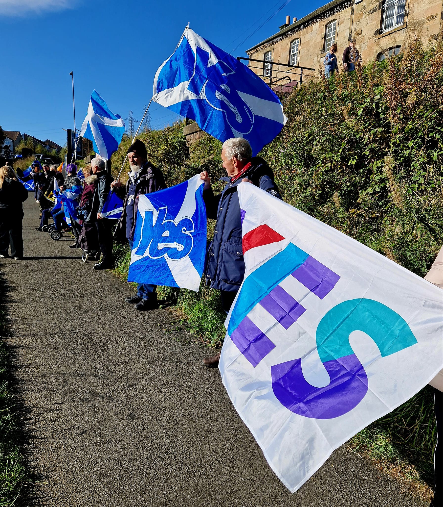 *Note: the undernoted photos were taken and distributed, on social media, by participants of the Chain of Freedom – Scotland. Any obtained via drone footage or where participants were not in ‘single file’, went against the COFS published advice.