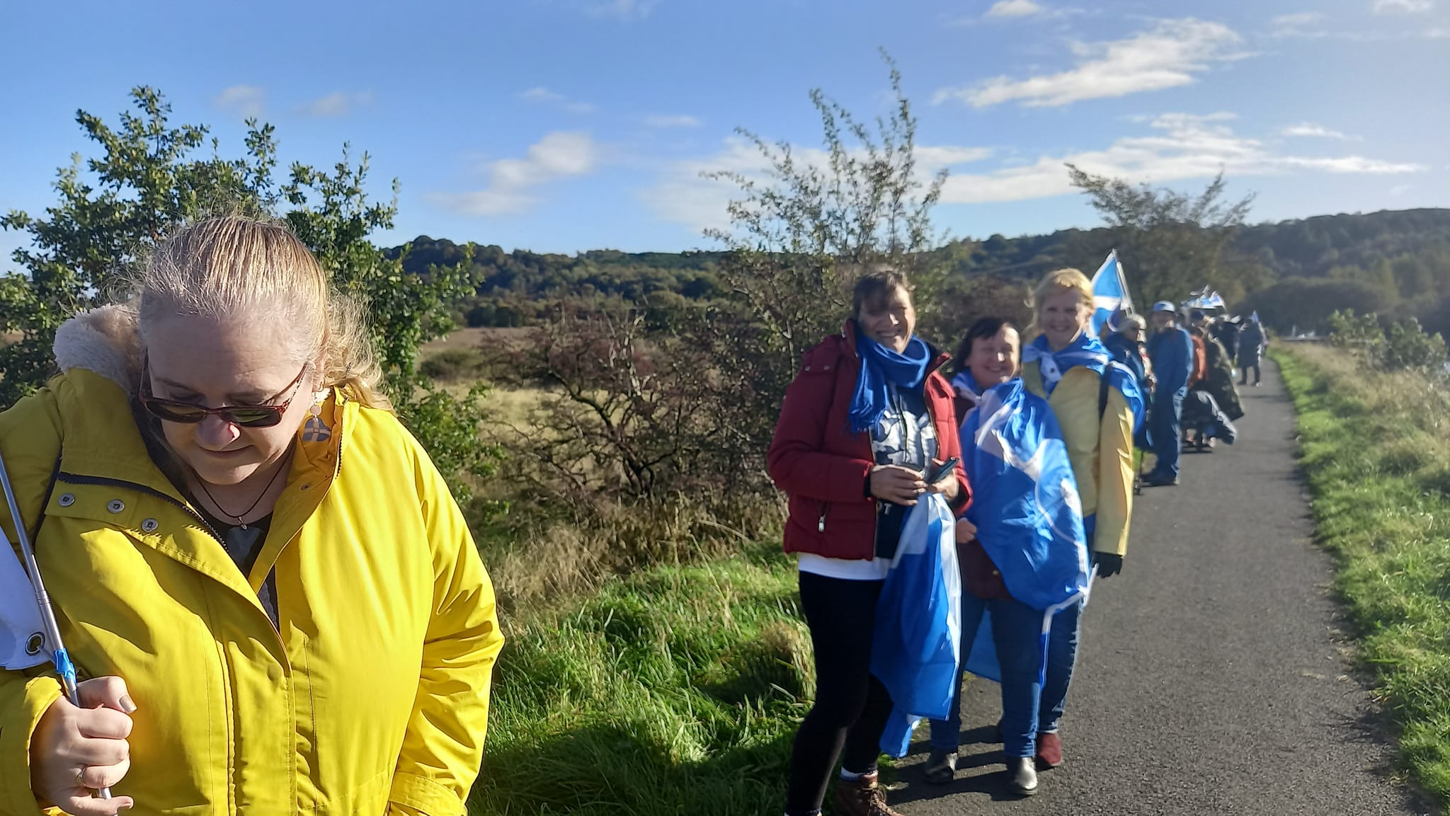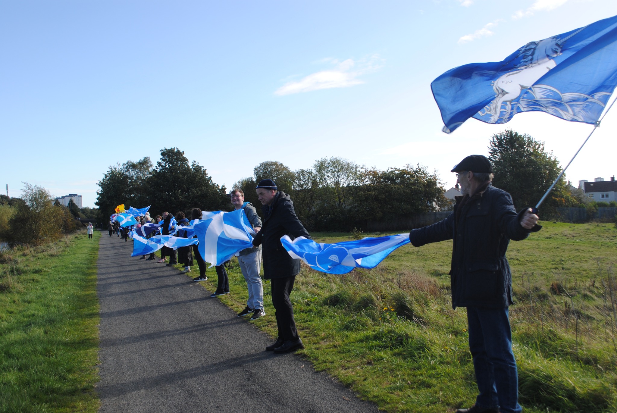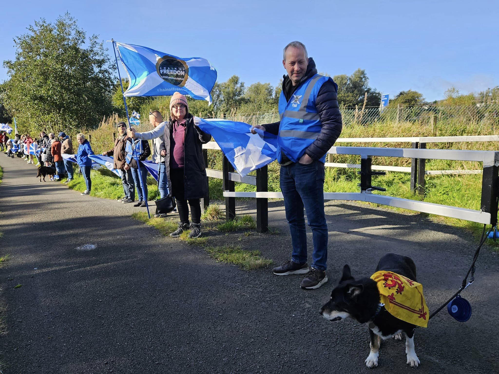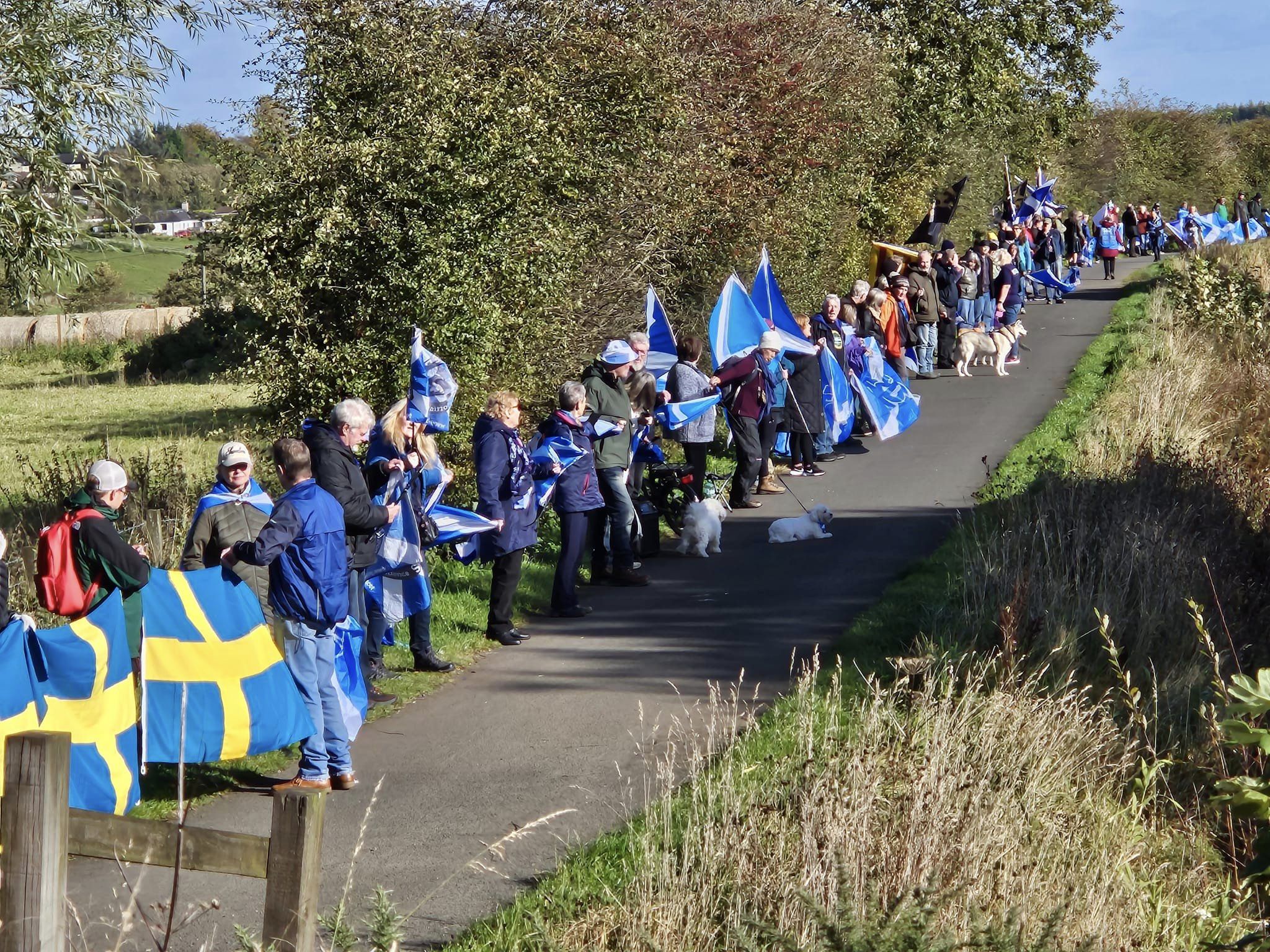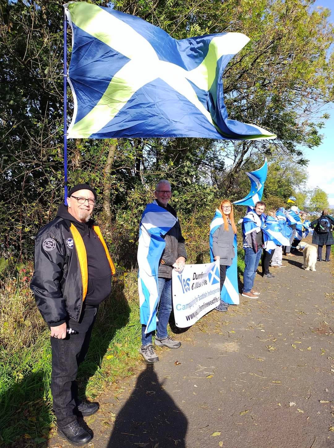 *Note: the undernoted photos were taken and distributed, on social media, by participants of the Chain of Freedom – Scotland. Any obtained via drone footage or where participants were not in ‘single file’, went against the COFS published advice.