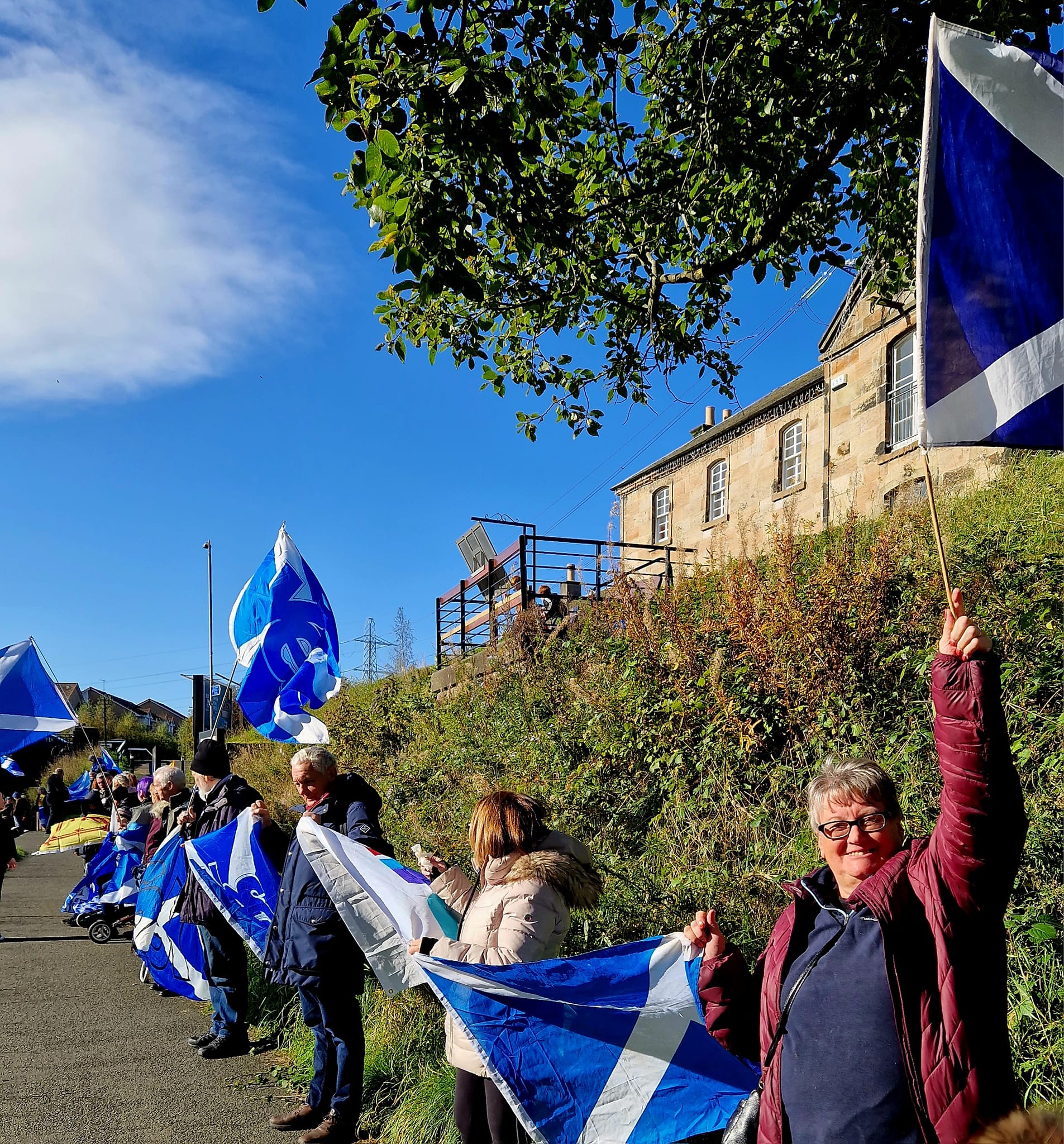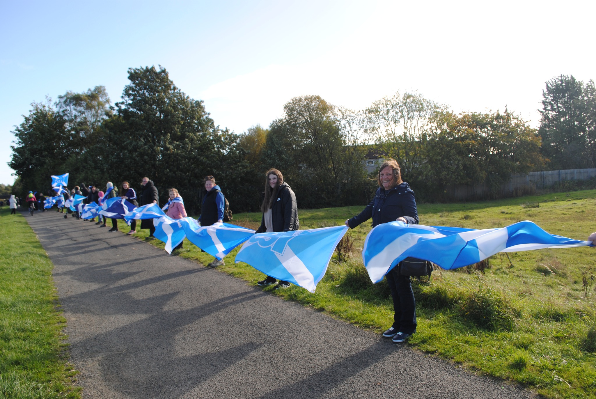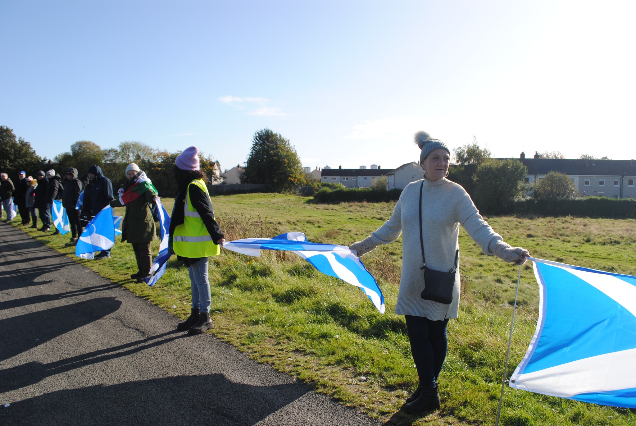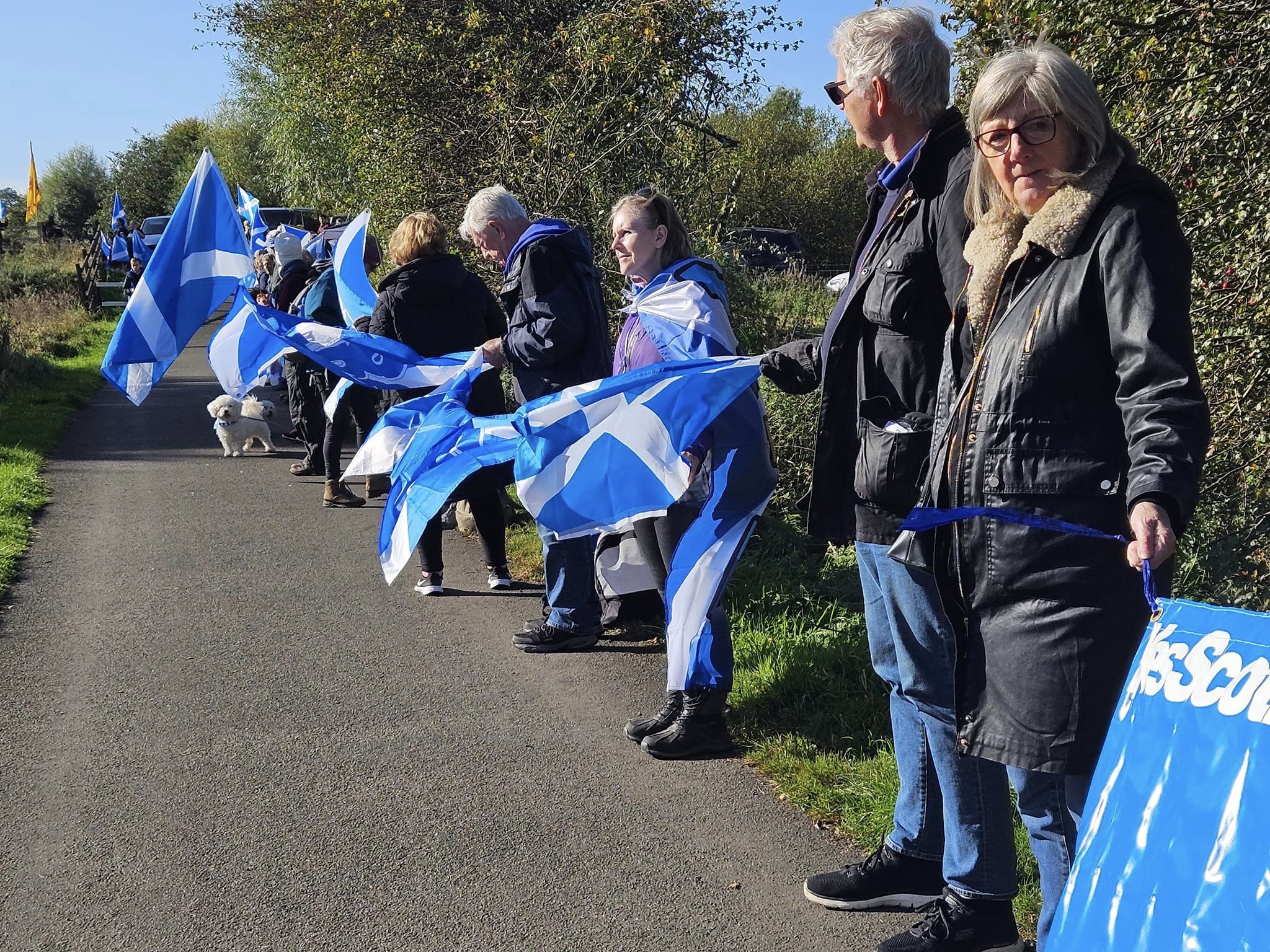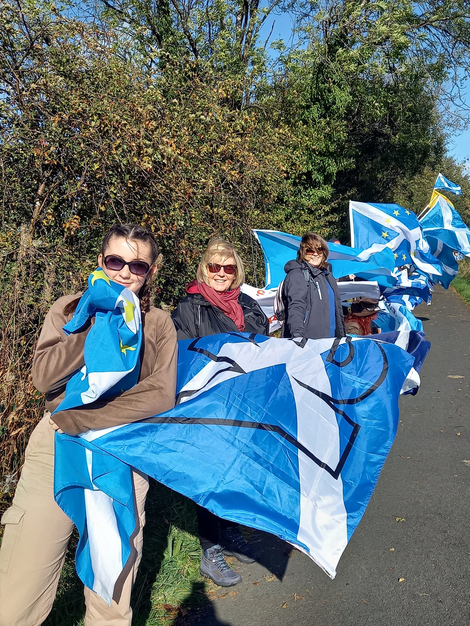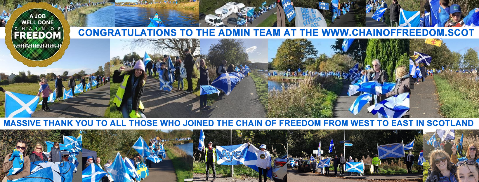 *Note: the undernoted photos were taken and distributed, on social media, by participants of the Chain of Freedom – Scotland. Any obtained via drone footage or where participants were not in ‘single file’, went against the COFS published advice.
