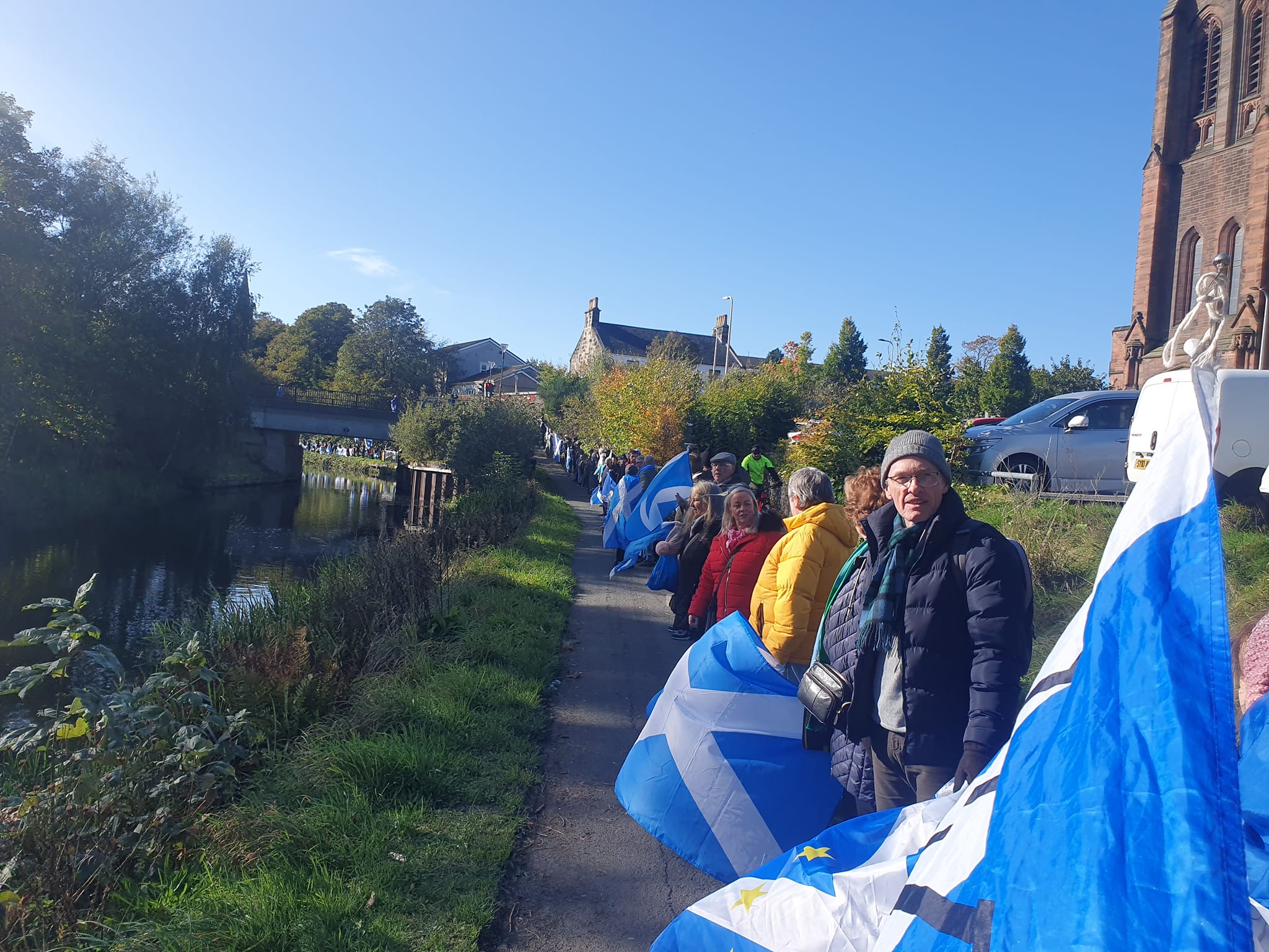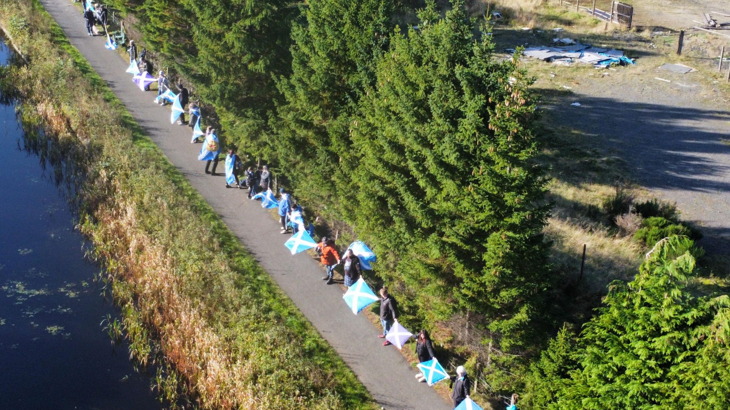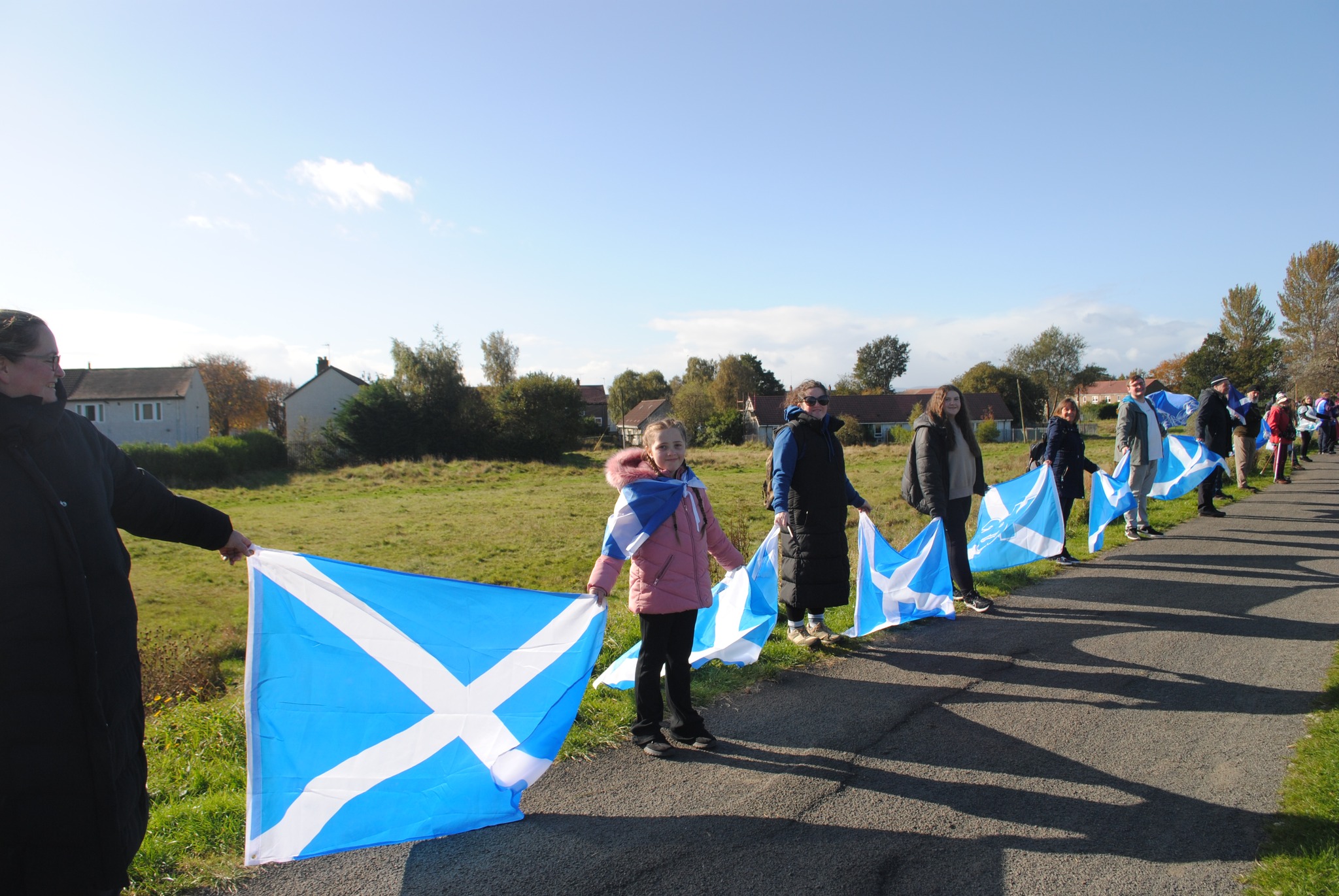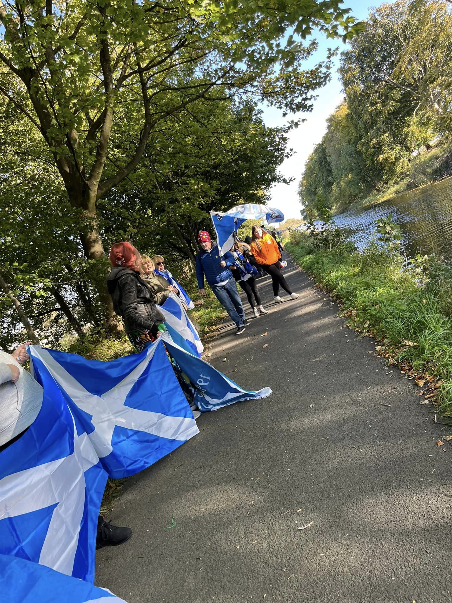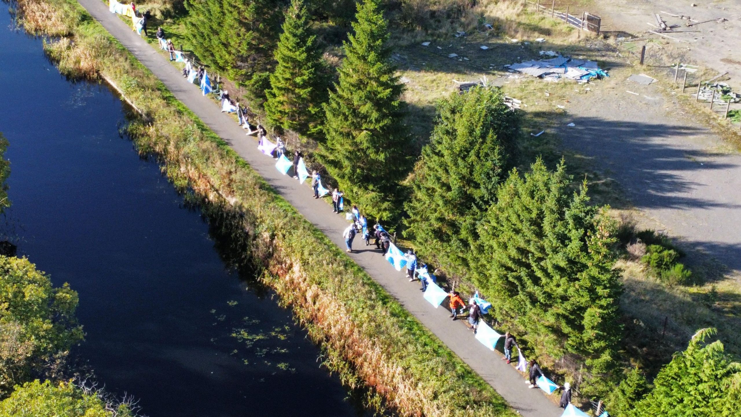 *Note: the undernoted photos were taken and distributed, on social media, by participants of the Chain of Freedom – Scotland. Any obtained via drone footage or where participants were not in ‘single file’, went against the COFS published advice.