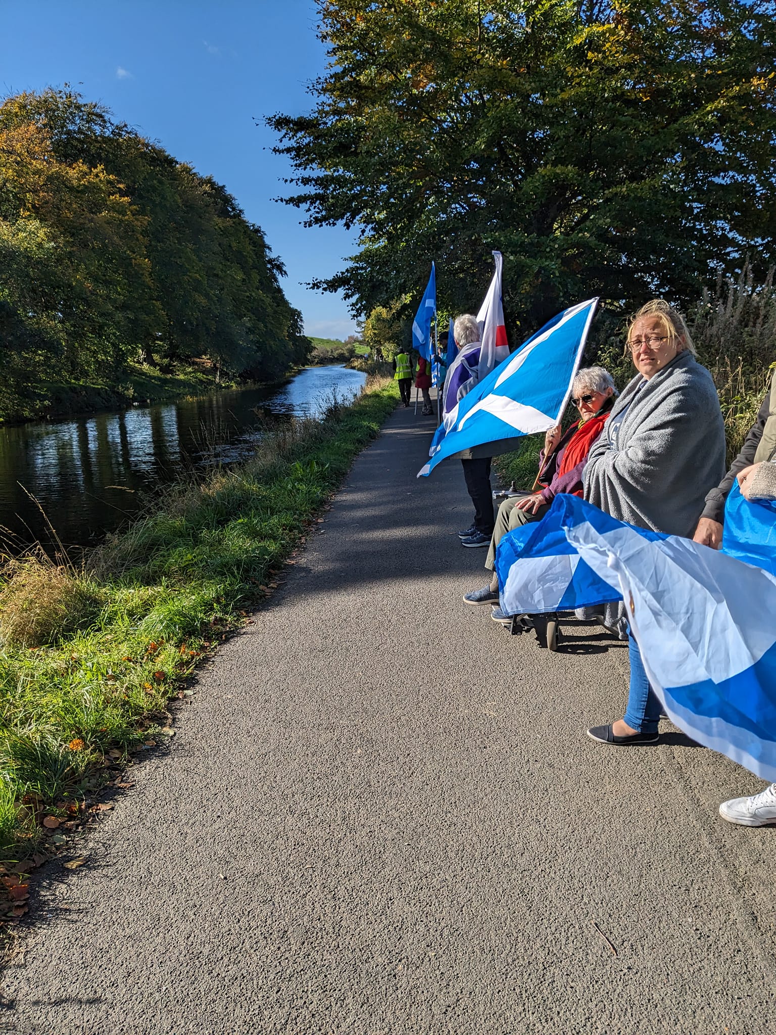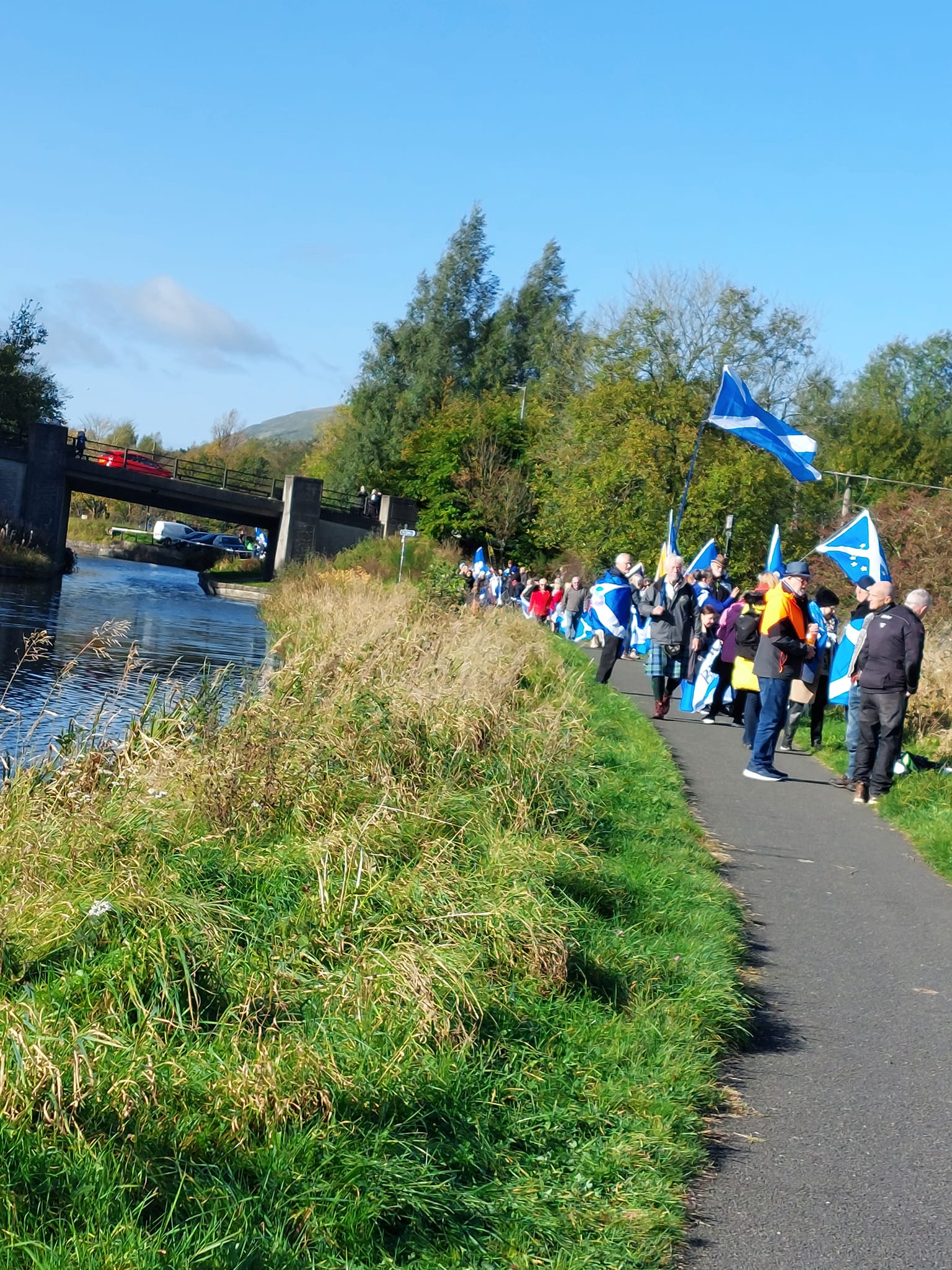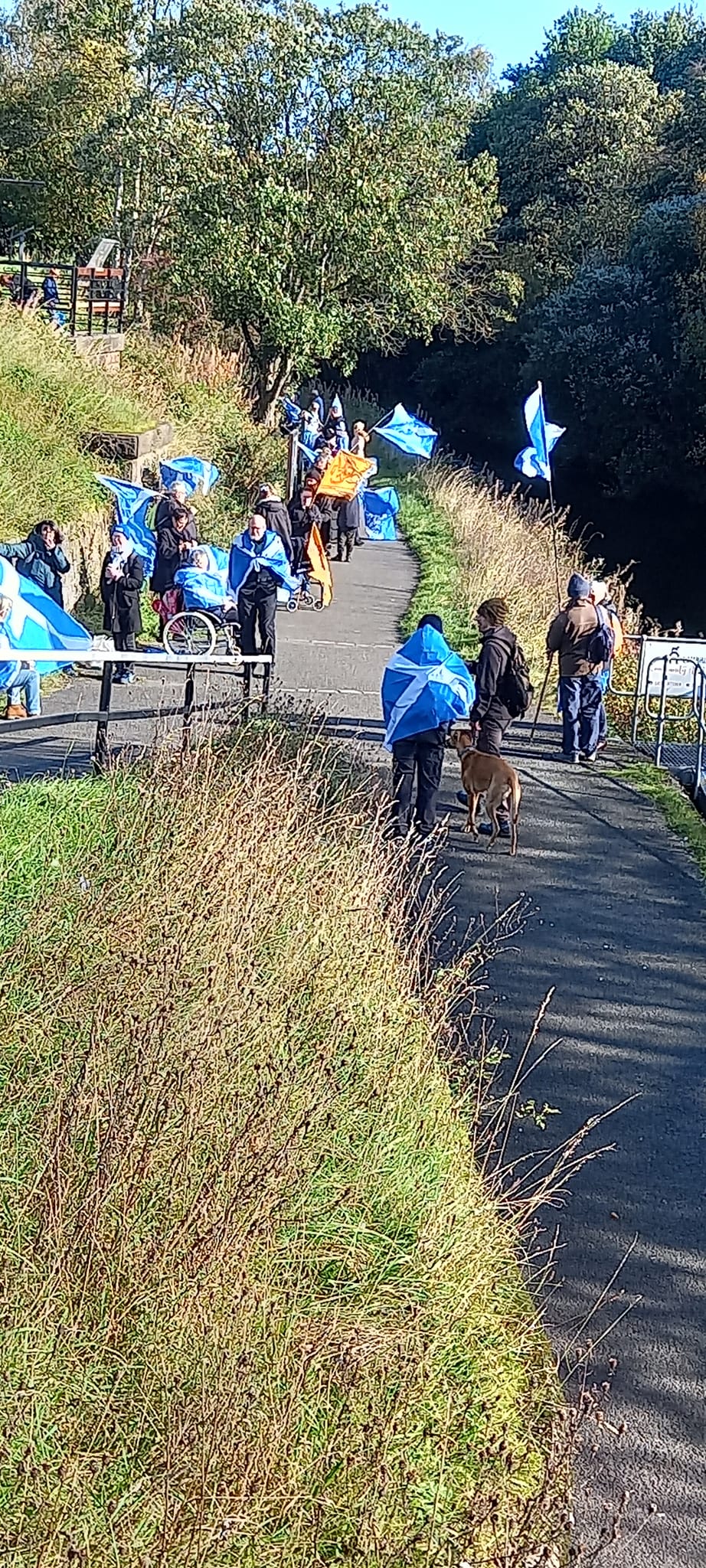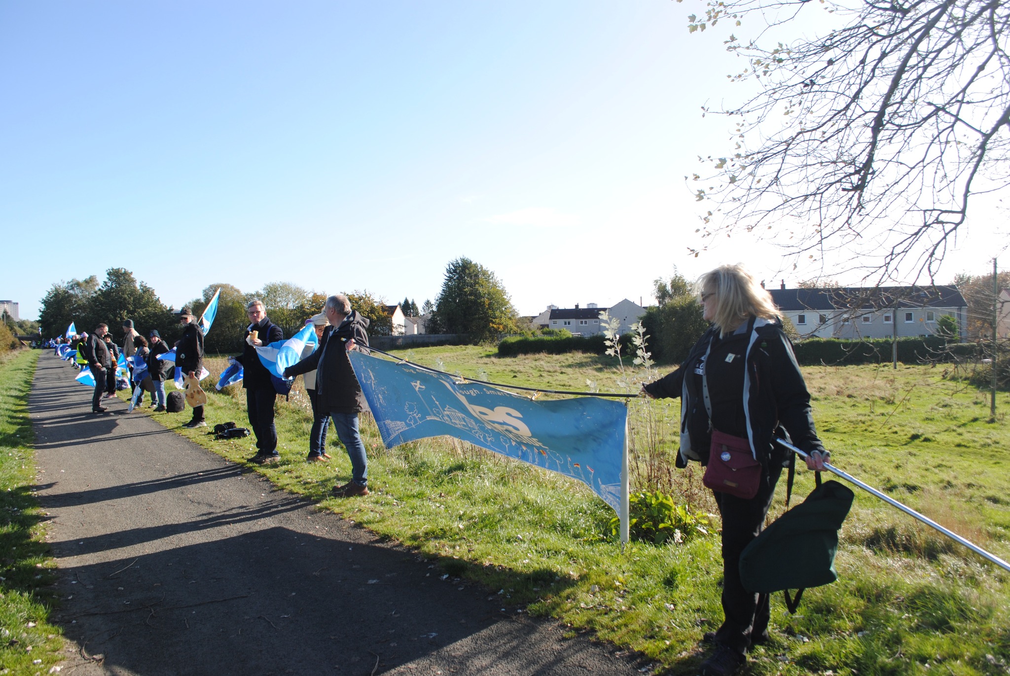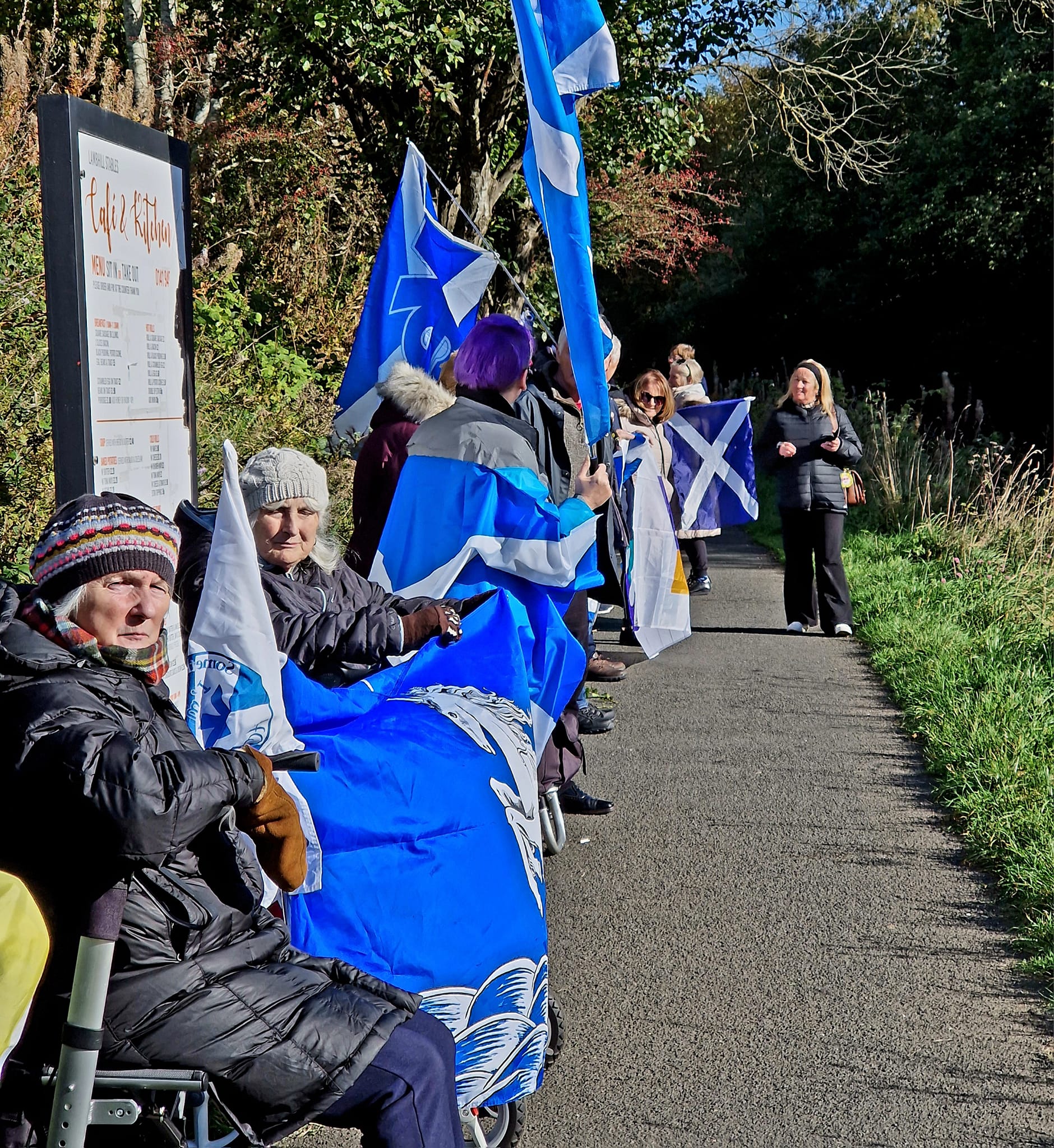 *Note: the undernoted photos were taken and distributed, on social media, by participants of the Chain of Freedom – Scotland. Any obtained via drone footage or where participants were not in ‘single file’, went against the COFS published advice.