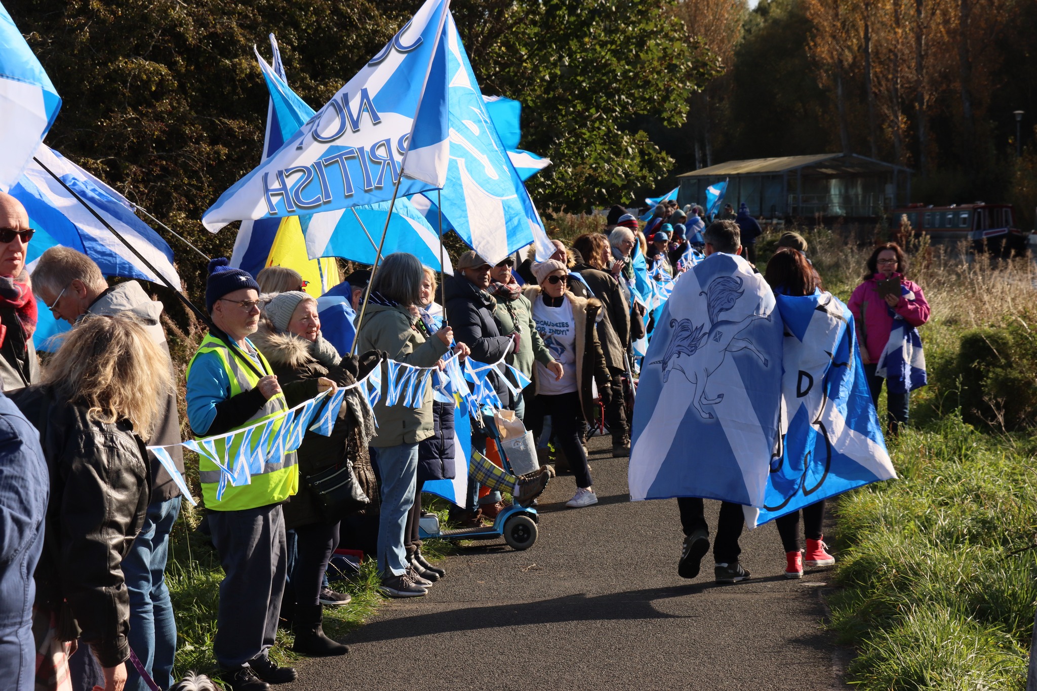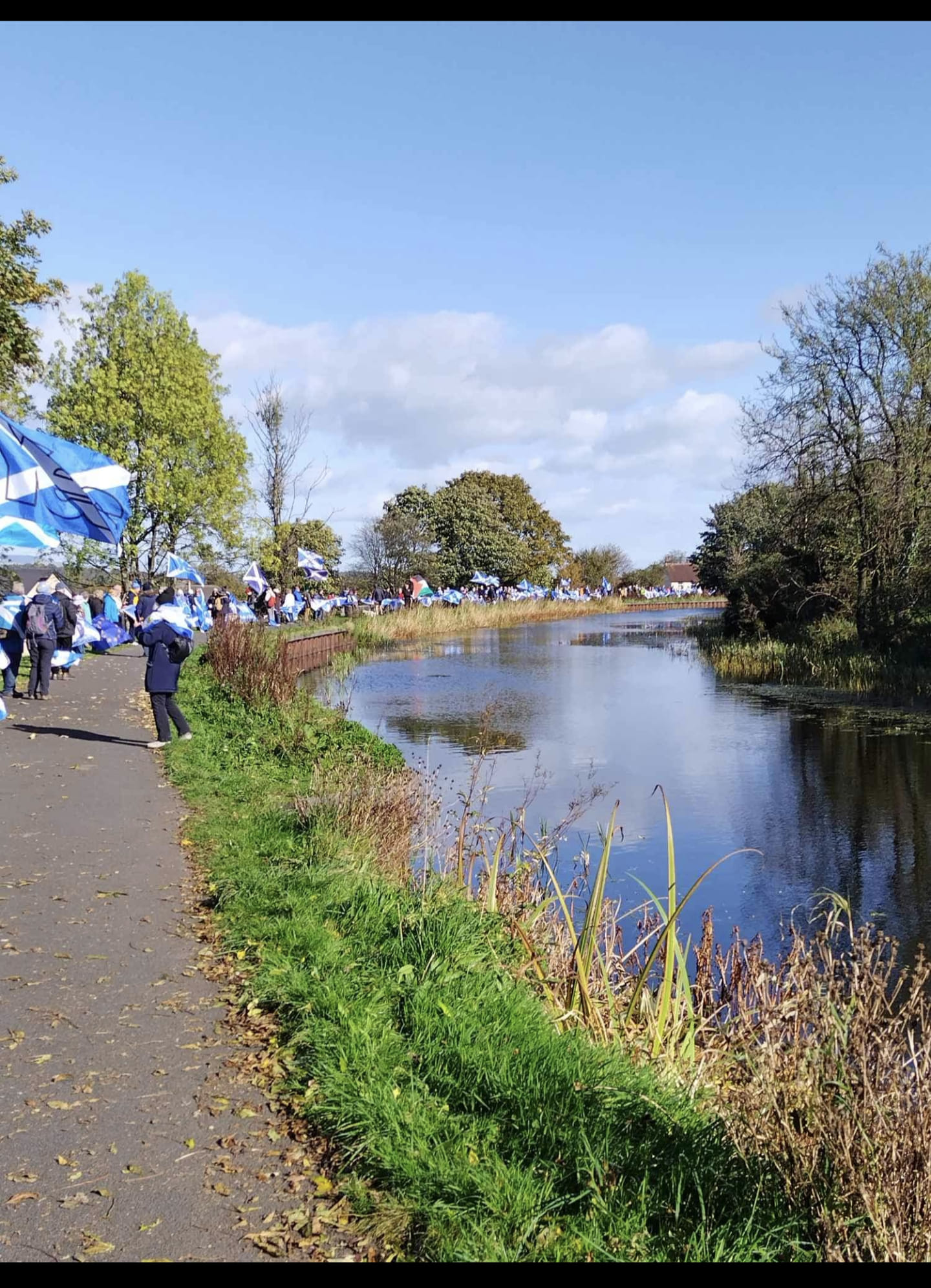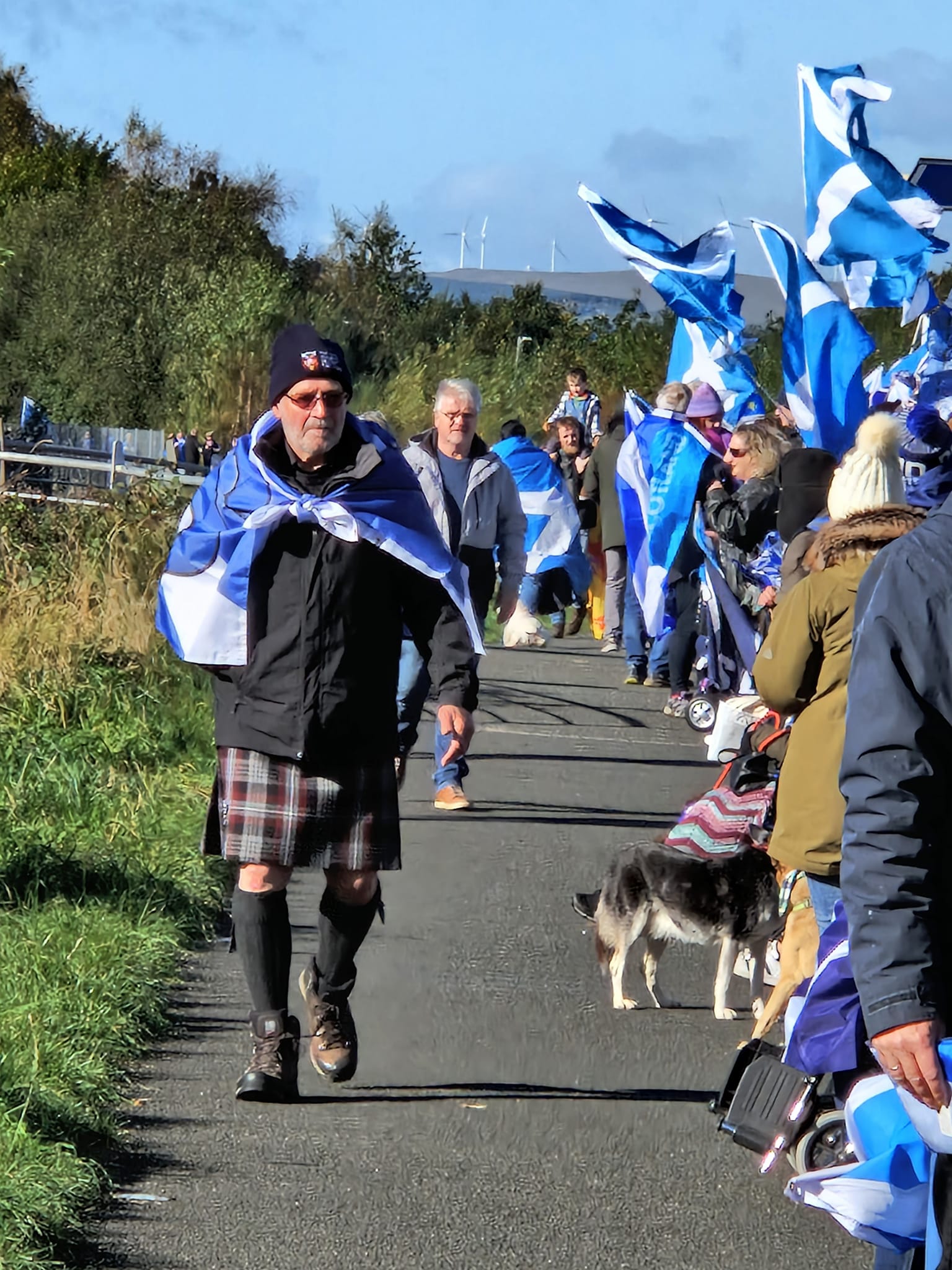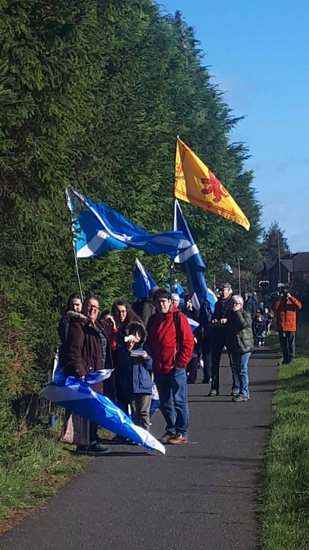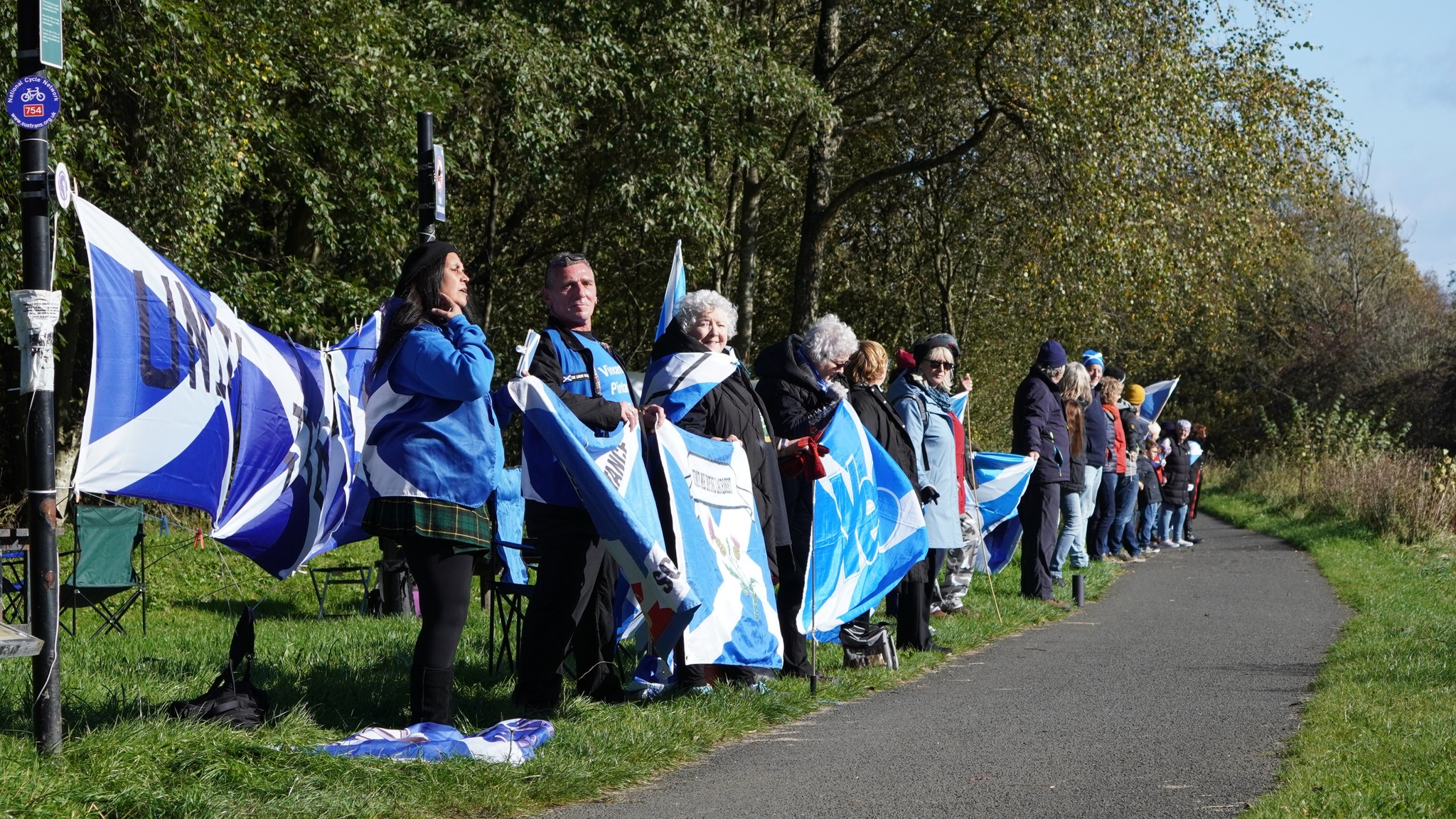 *Note: the undernoted photos were taken and distributed, on social media, by participants of the Chain of Freedom – Scotland. Any obtained via drone footage or where participants were not in ‘single file’, went against the COFS published advice.