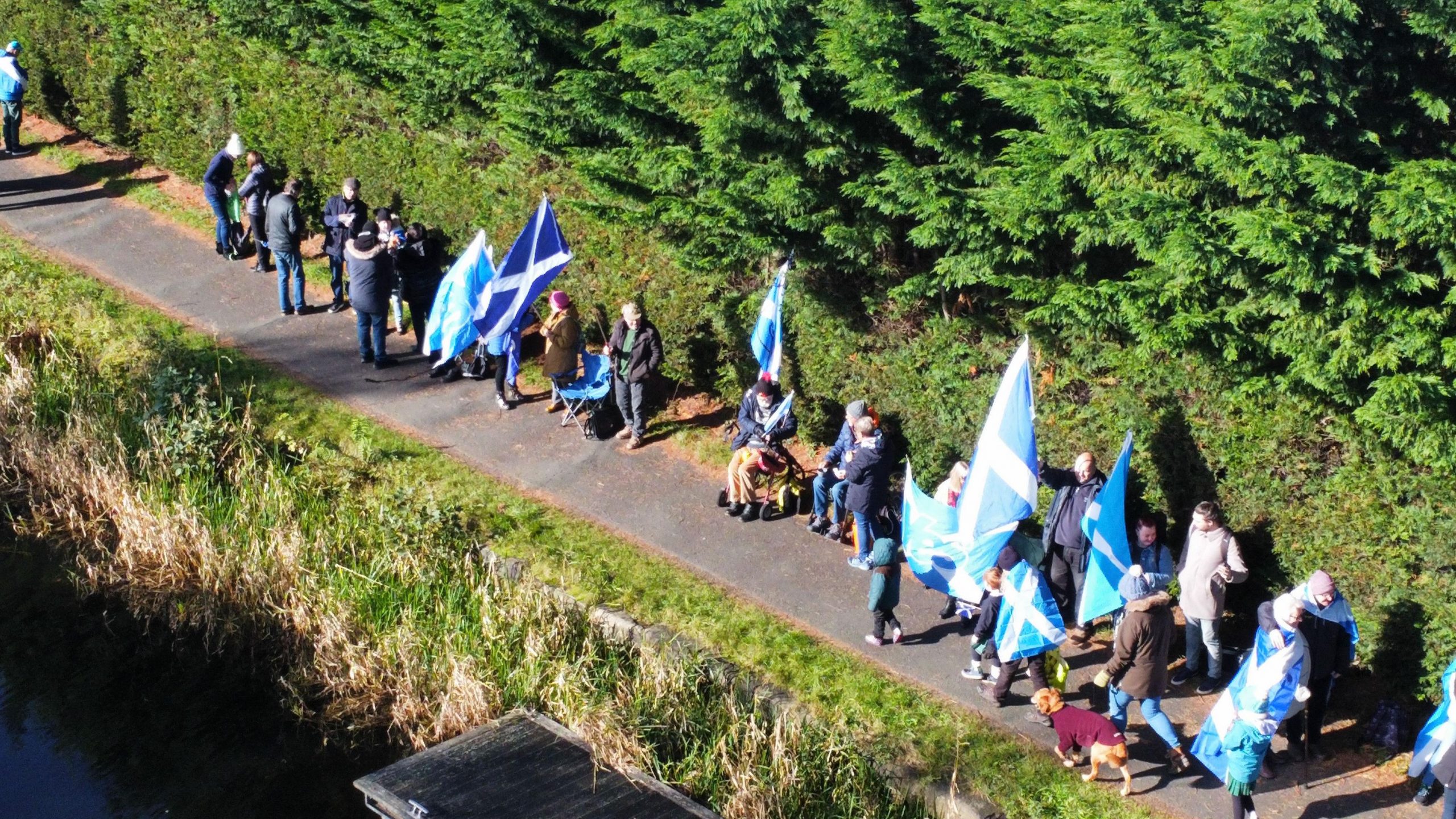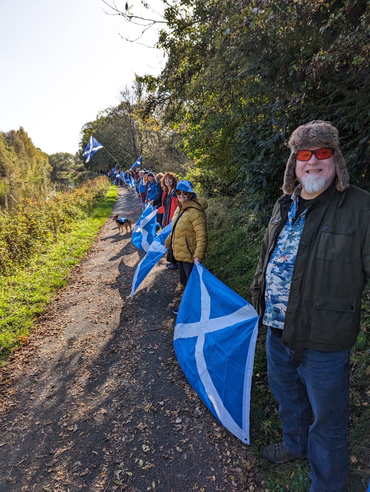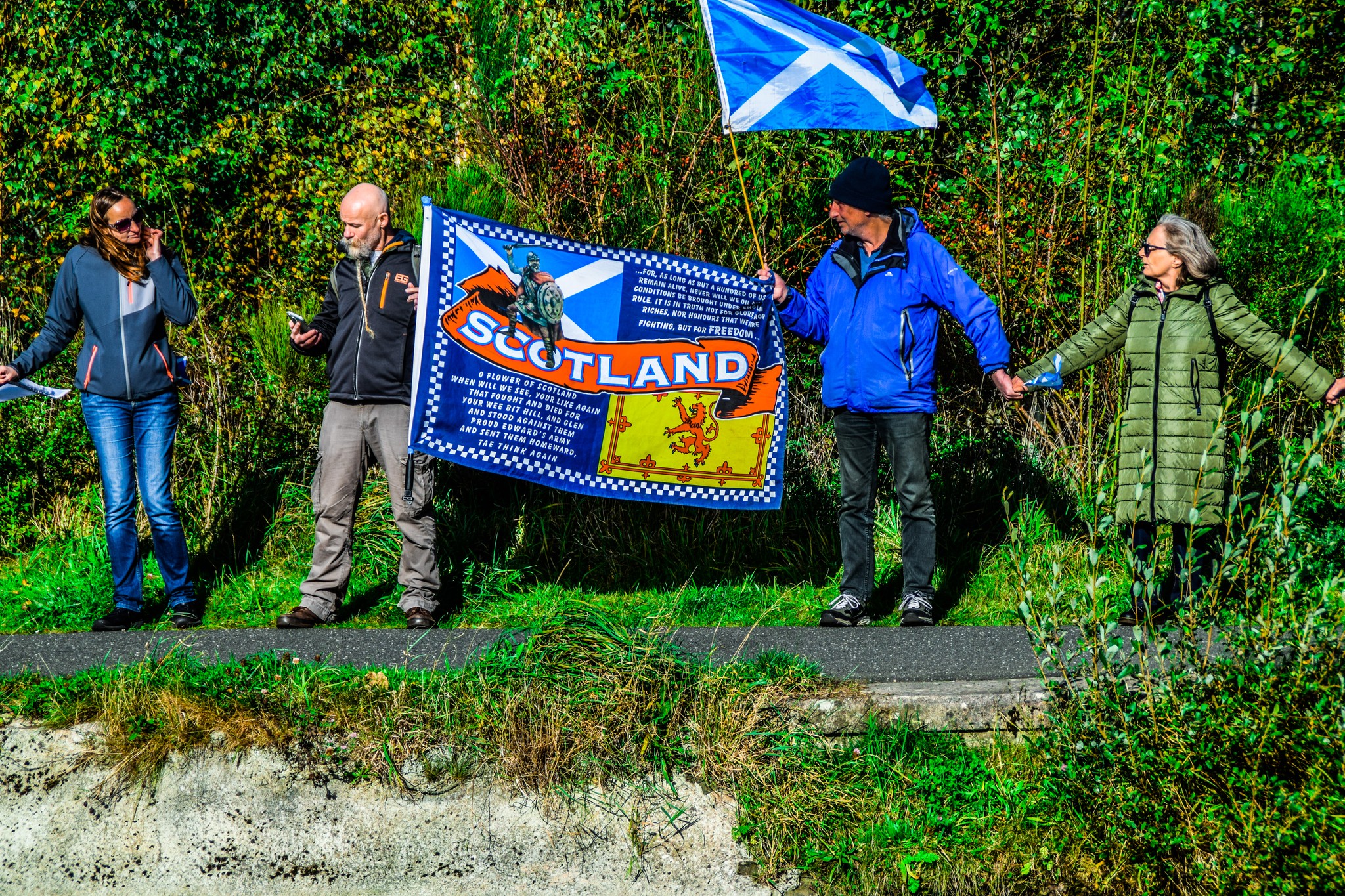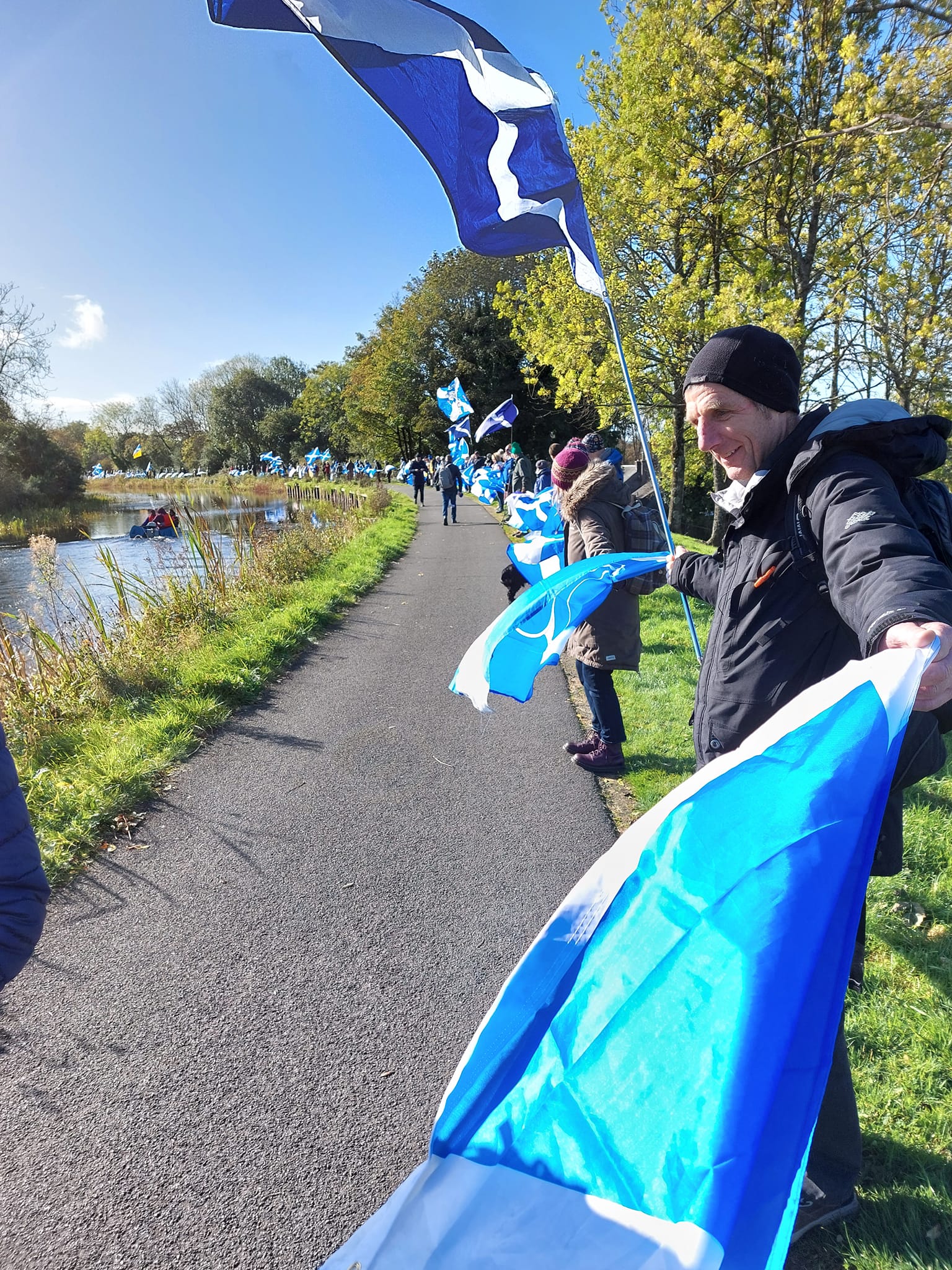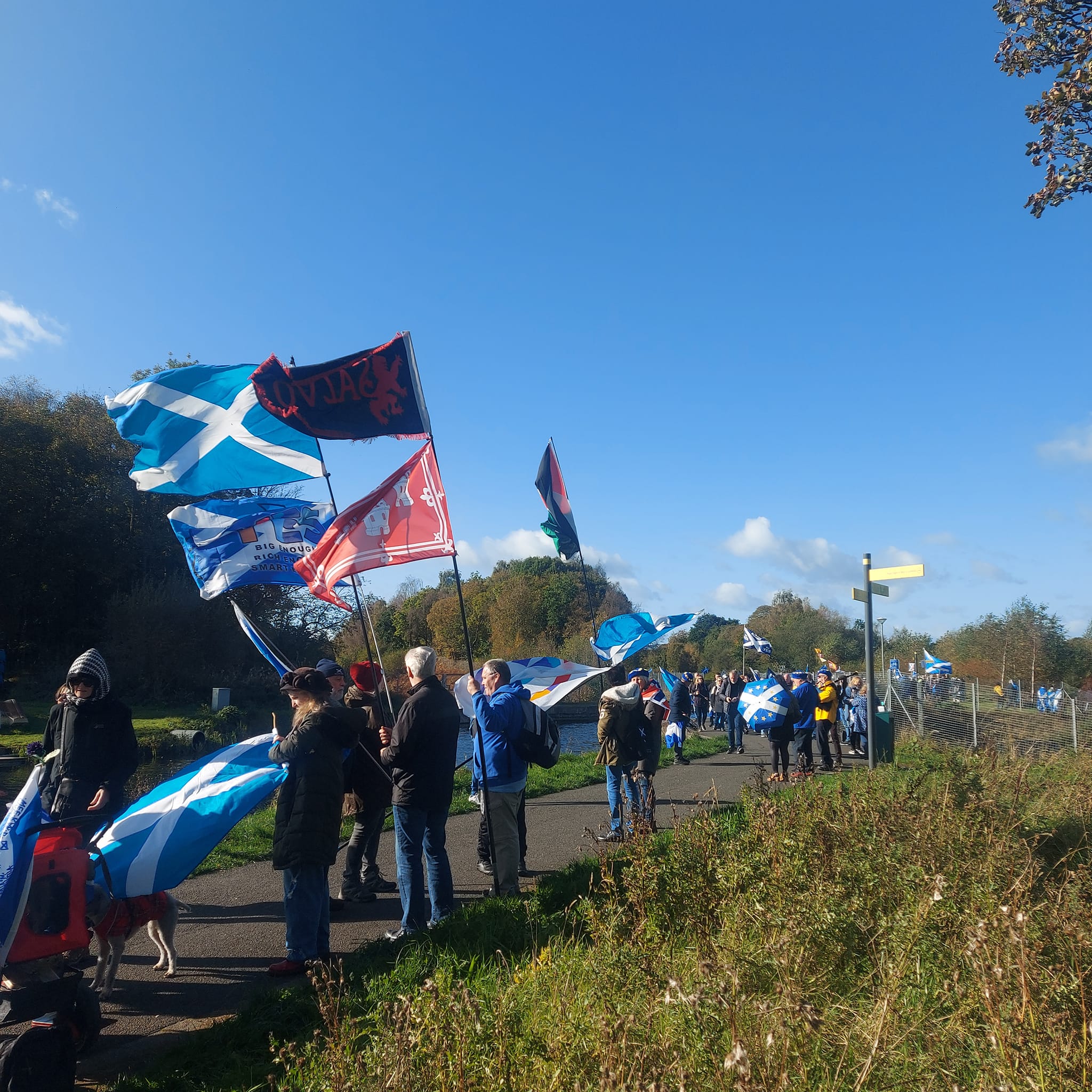 *Note: the undernoted photos were taken and distributed, on social media, by participants of the Chain of Freedom – Scotland. Any obtained via drone footage or where participants were not in ‘single file’, went against the COFS published advice.