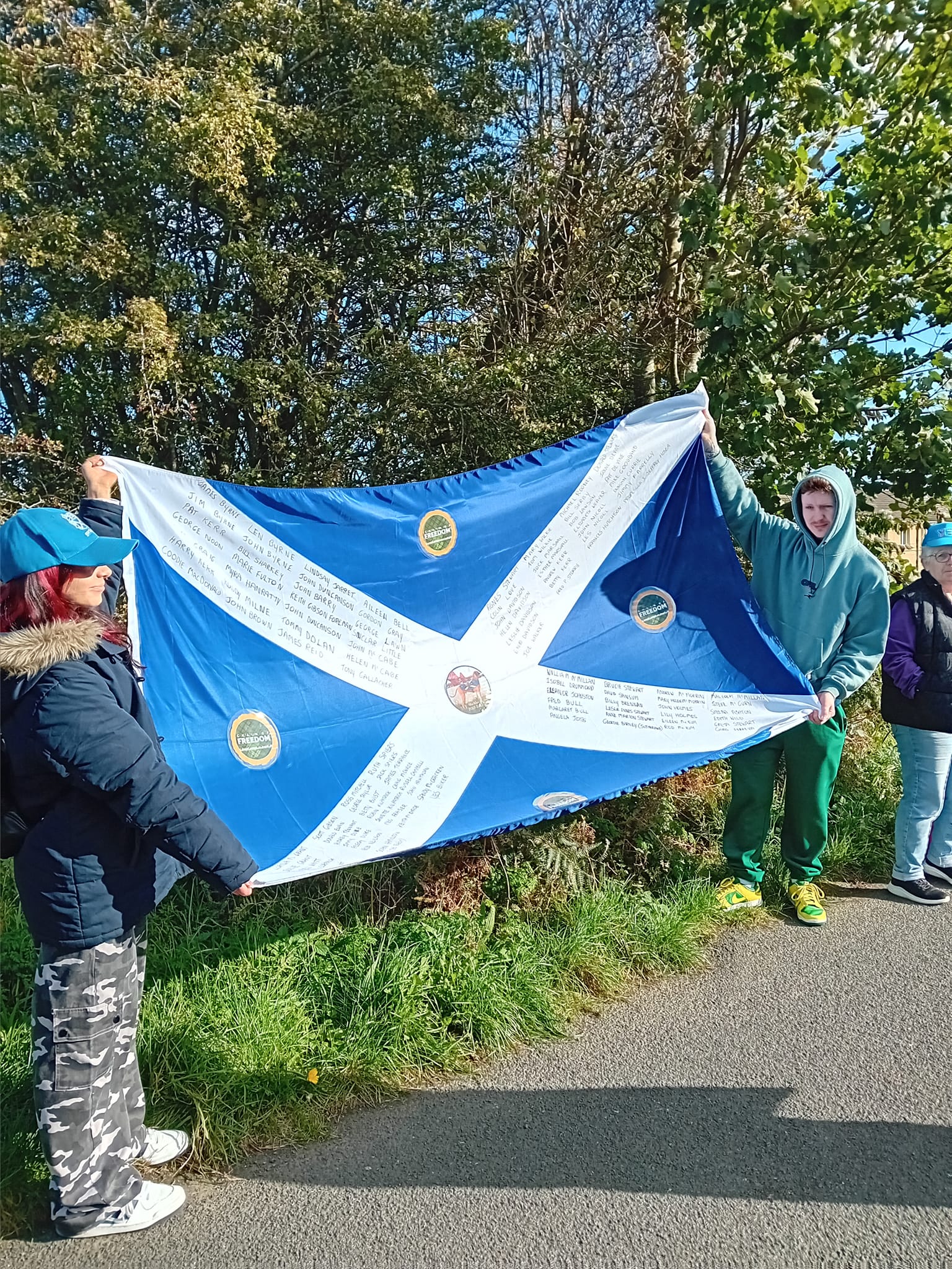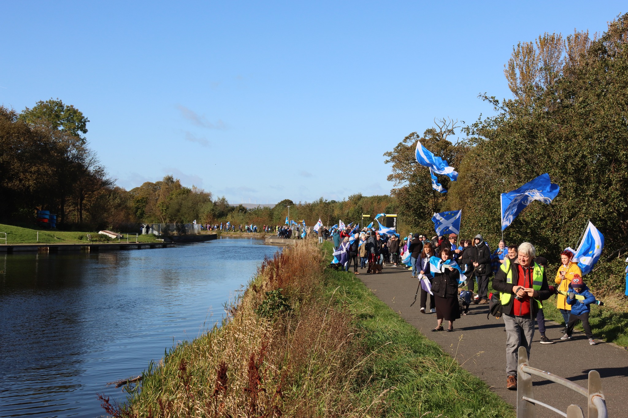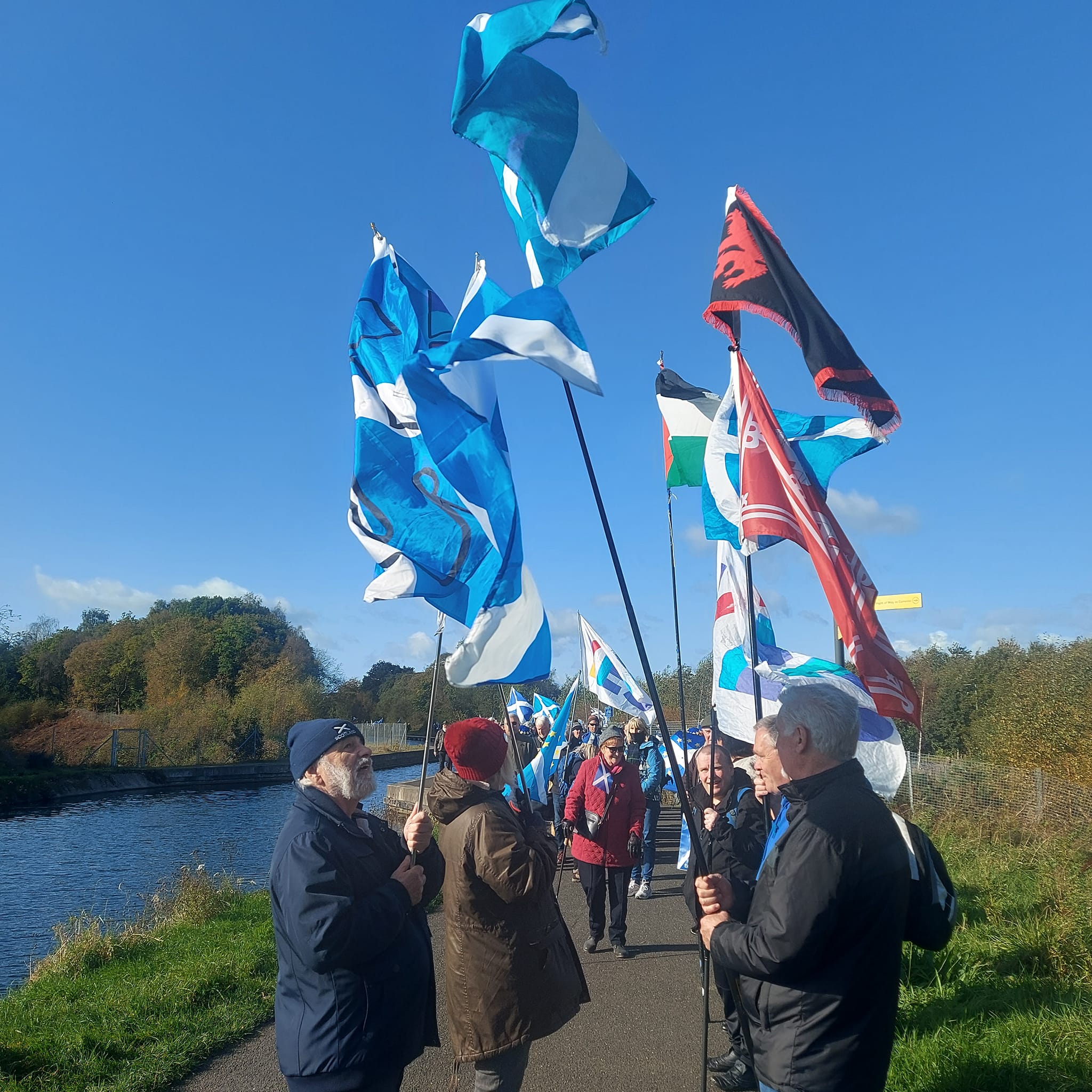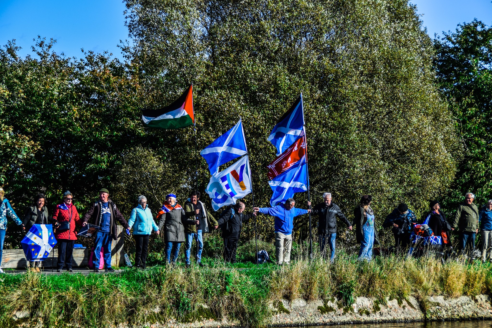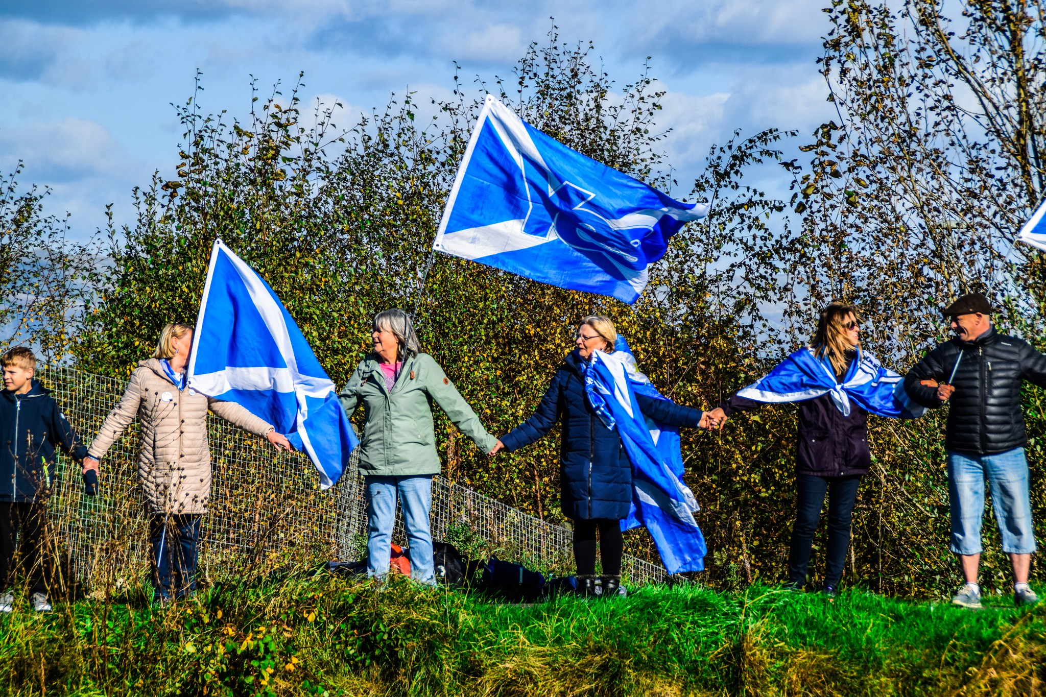 *Note: the undernoted photos were taken and distributed, on social media, by participants of the Chain of Freedom – Scotland. Any obtained via drone footage or where participants were not in ‘single file’, went against the COFS published advice.