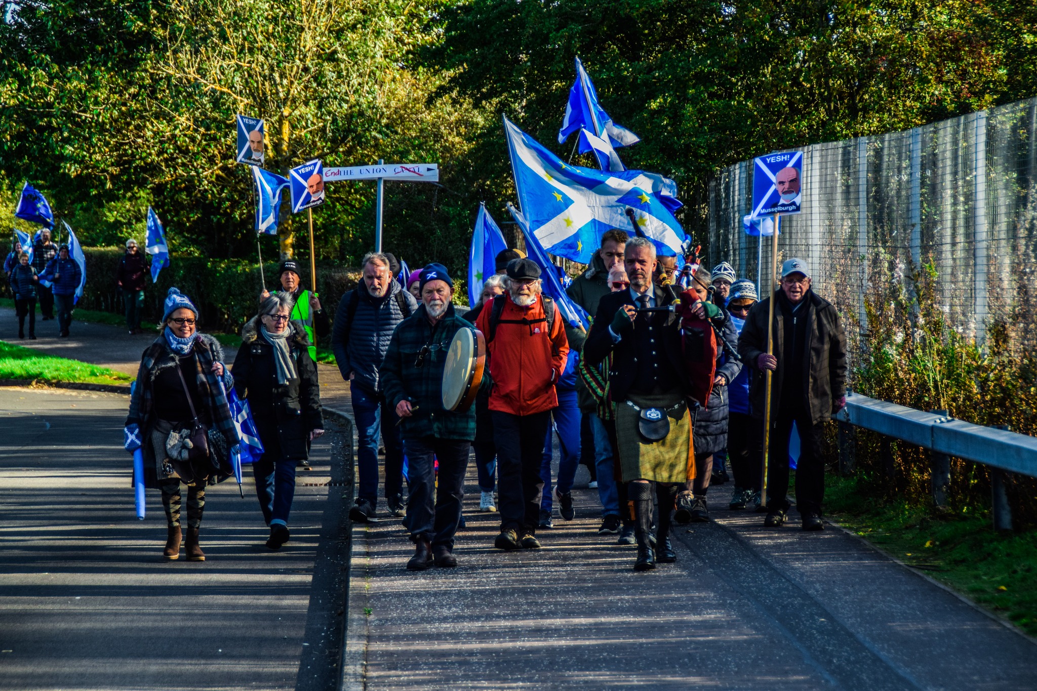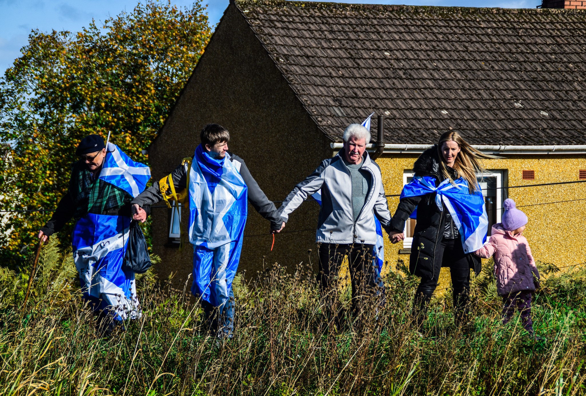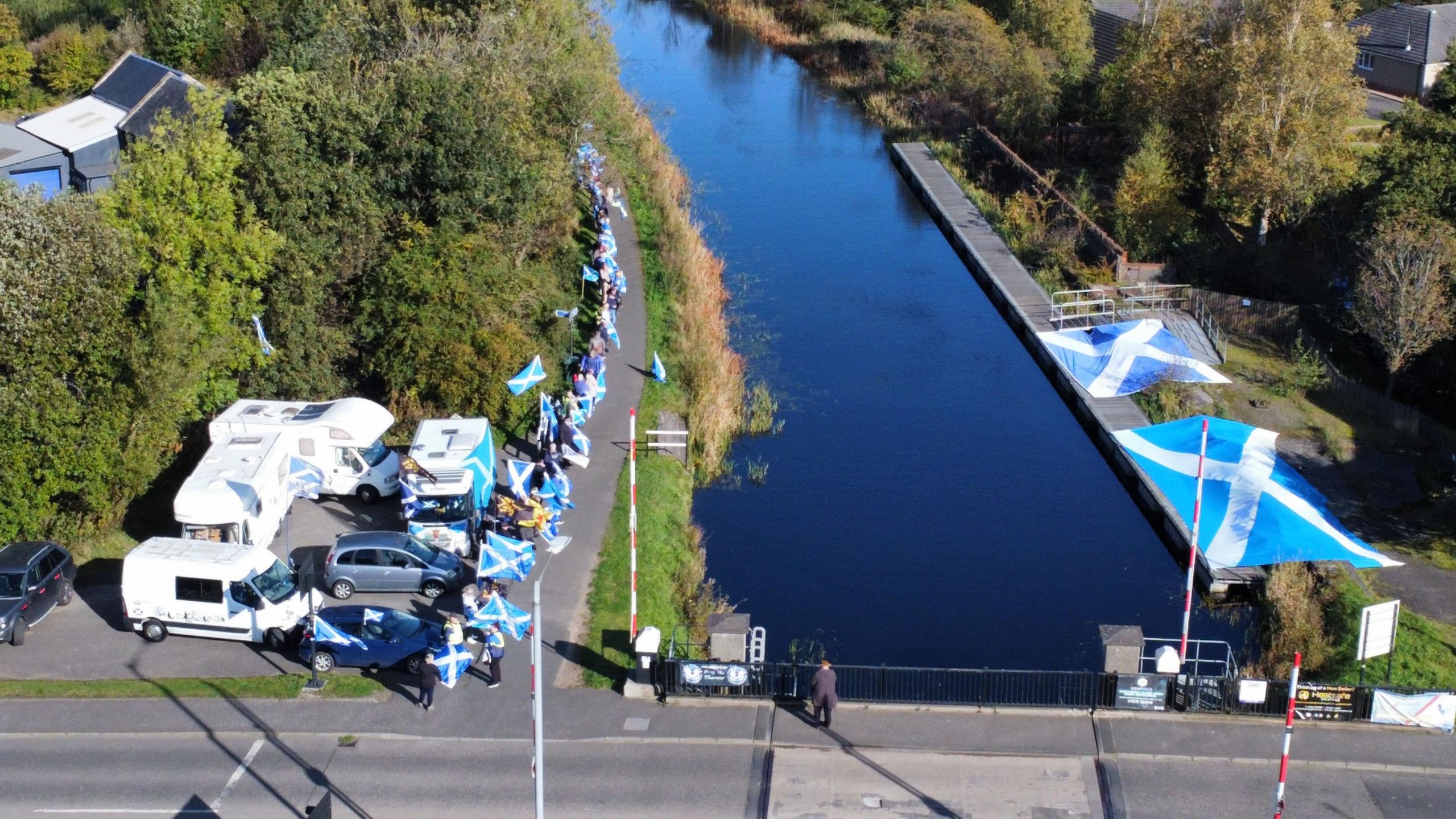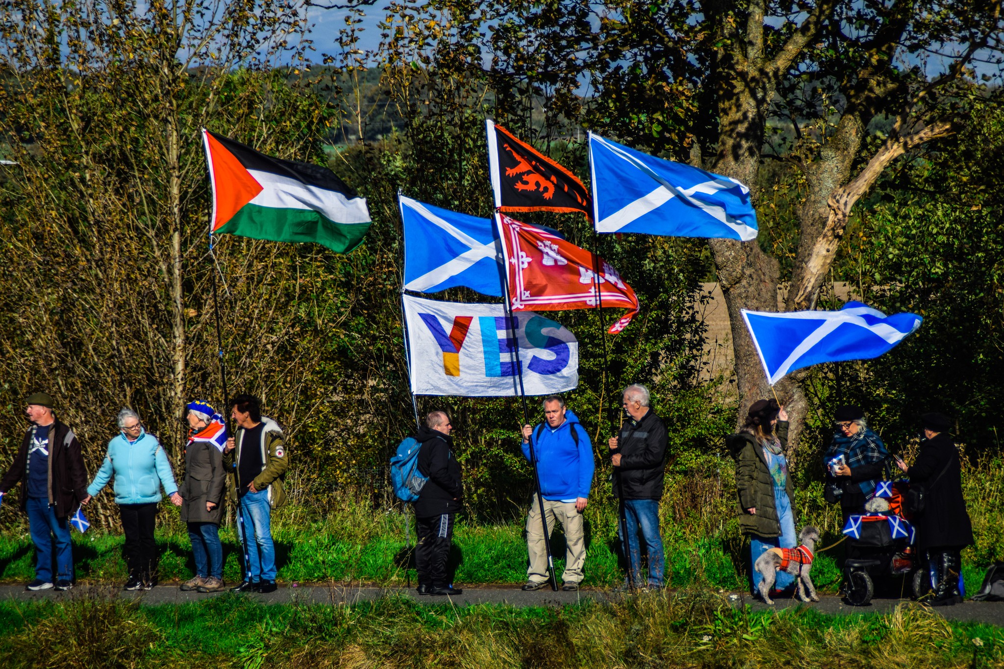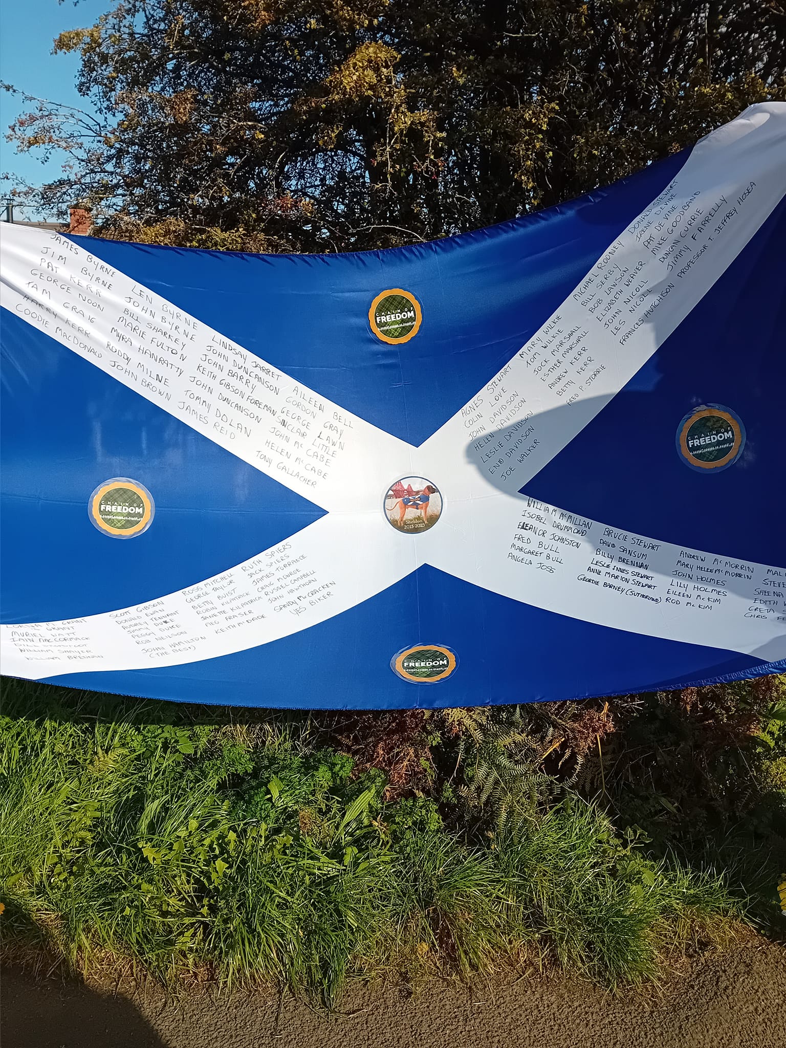 *Note: the undernoted photos were taken and distributed, on social media, by participants of the Chain of Freedom – Scotland. Any obtained via drone footage or where participants were not in ‘single file’, went against the COFS published advice.
